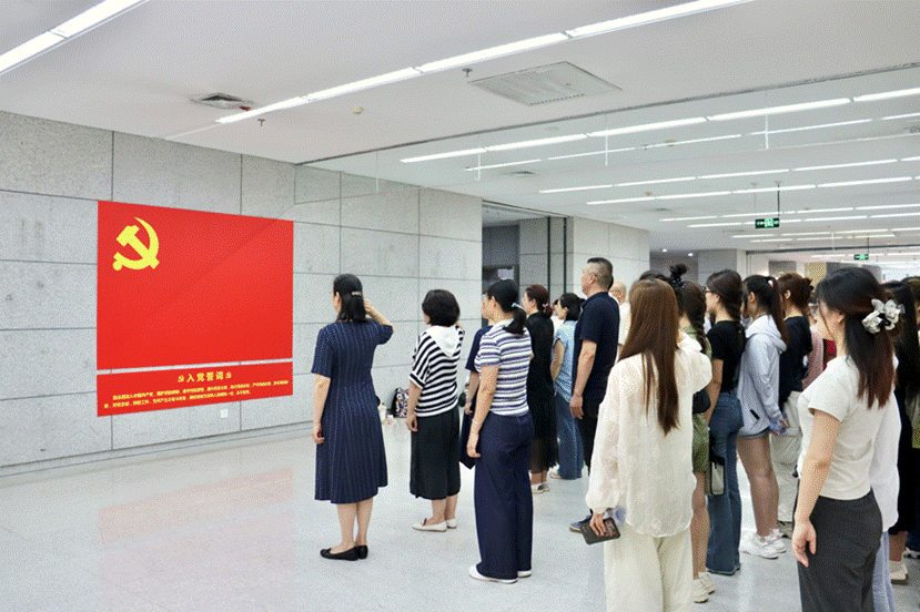 随后,党委书记胡晓明带领全体党员重温入党誓词,铿锵有力的誓言表明了大家忠诚于党、铭记初心、立足岗位、奉献担当的坚定信念。胡晓明强调,全体党员要增强学纪、知纪的政治自觉,提高明纪、守纪的行动自觉,夯实崇纪、遵纪的道德定力。
