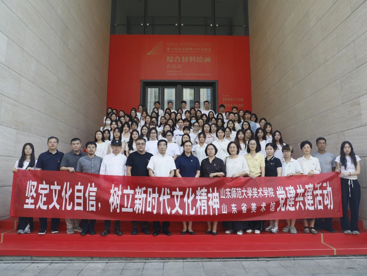 为深入学习贯彻习近平文化思想,积极构建美术学院“党建+”工作模式,推动党建与业务深度融合发展,引领学生党员树立新时代文化精神,自觉肩负起新时代文化使命,2024年8月28日下午,美术学院党委组织学生党员赴山东省美术馆开展“坚定文化自信,树立新时代文化精神”山东师范大学美术学院、山东省美术馆党建共建主题党日活动,旨在以“党建+实践”模式推动“校馆融合”建设。美术学院党委书记胡晓明、党委副书记葛晓霞、山东省美术馆党总支书记何茂峰、山东省美术馆副馆长姚允东、山东省美术馆学术研究部主任郭振宇、美术学院团委书记丁彬、国画系副教授涂少辉、基础教学部副教授秦德梅及双方党员代表、美术学院85名党员学生代表参加。