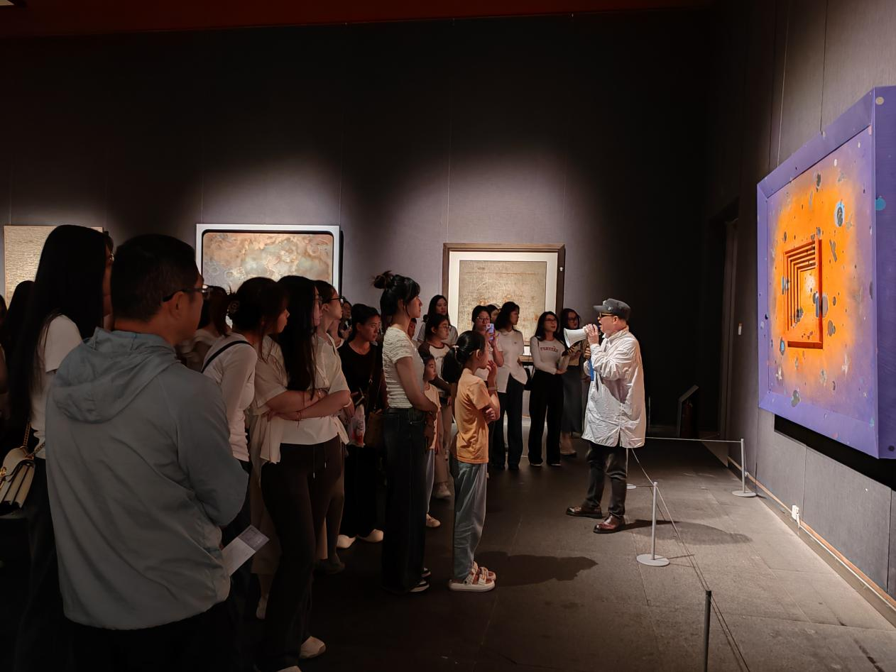 学生党员在郭振宇主任的讲解下先后参观了第十四届全国美术作品展(综合材料展)、“新边界——山东美术馆馆藏综合材料绘画研究展”“画述百年——山东美术馆馆藏革命历史题材作品展”。