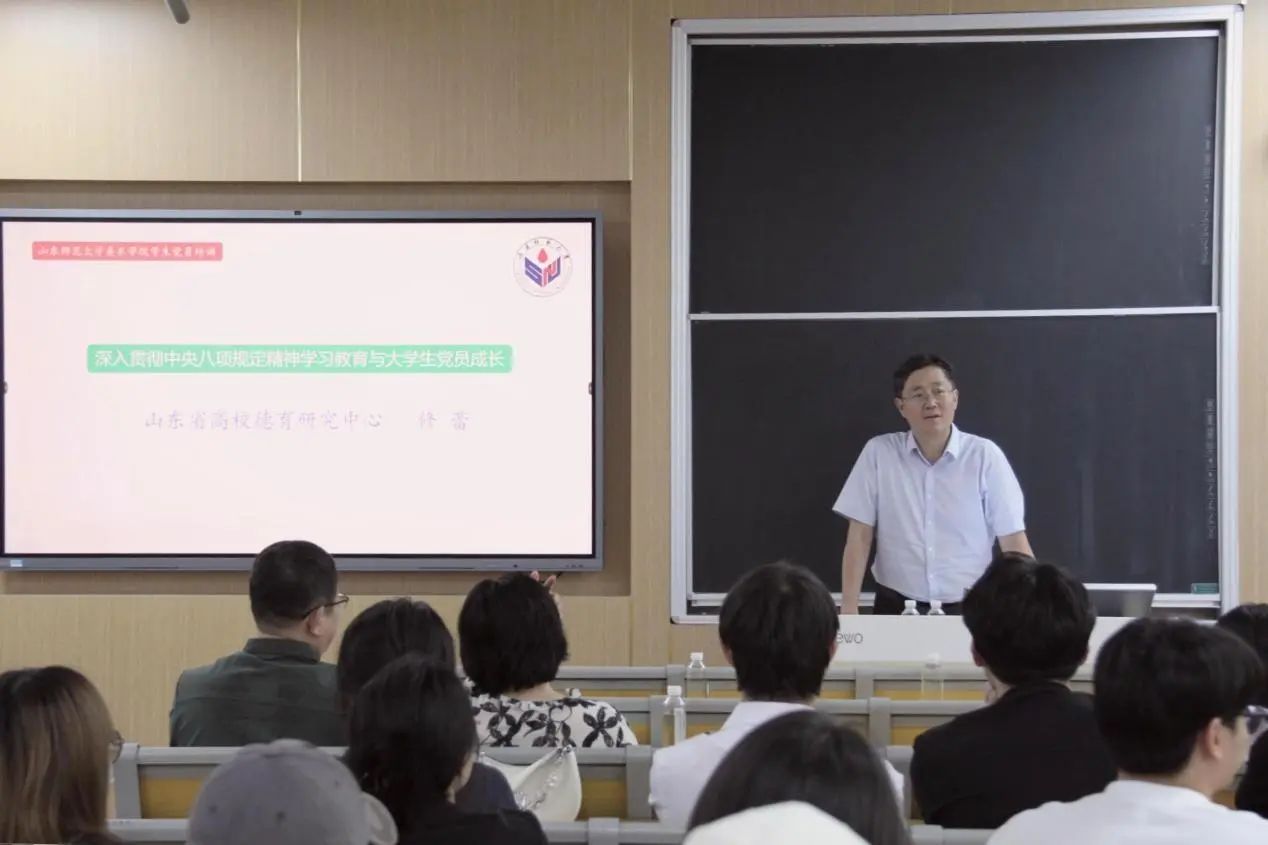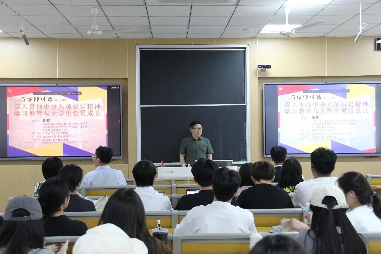 6月18日下午,由校团委与美术学院团委联合主办的“深入贯彻中央八项规定精神学习教育与大学生党员成长”第210期与信仰对话主题讲座于山东师范大学千佛山校区教学二楼2255举行。这场知识盛宴,为美术学院学生党员带来了一场深刻的思想启迪与精神洗礼。