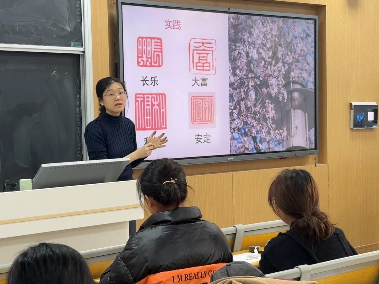 11月23日,美术学院零零印社在学院2255教室举办了“方寸之韵,金石华章”篆刻实践活动。本次活动由社团部策划组织,2024级书法专业研究生彭莹莹担任主讲人并进行篆刻指导,美术学院部分同学参加。