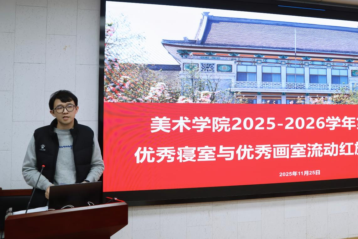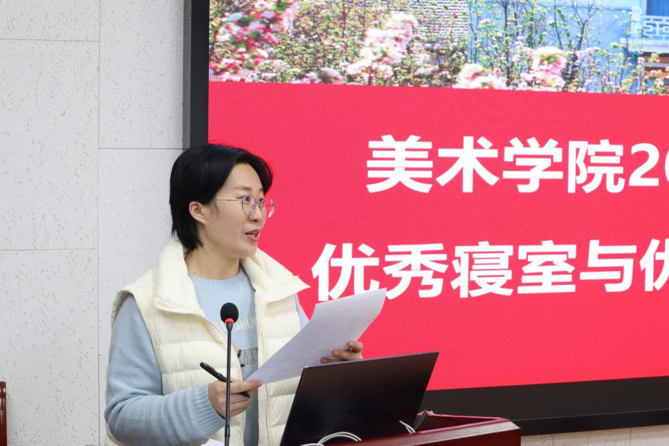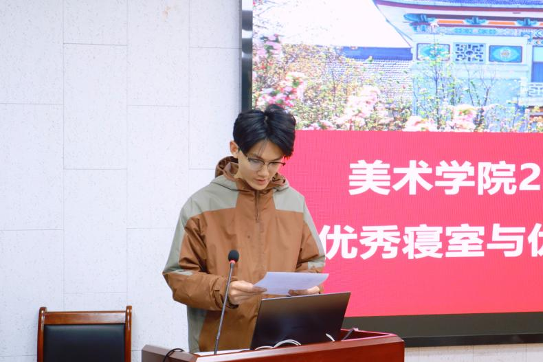 李依琳、李睿涵分别代表研究生会、学生会权益服务部,依次宣读研究生、本科生优秀寝室及画室获奖名单,表彰各获奖集体在日常管理、氛围营造中的优异表现,其做法也为全院集体建设起到示范作用。