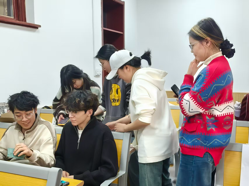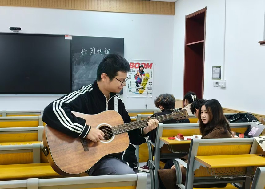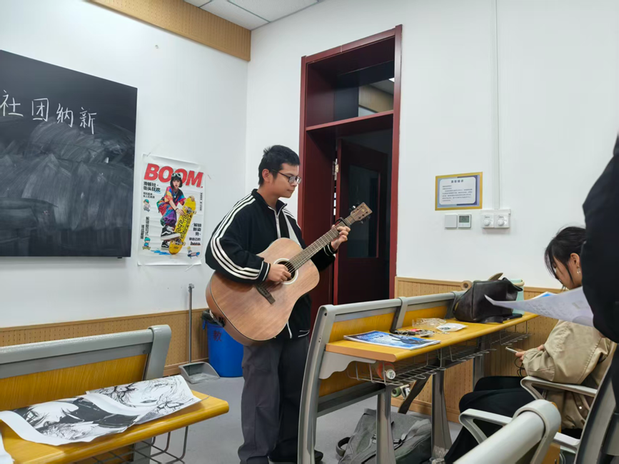 篆刻社不仅陈列了社员原创作品,还让大家在指尖触感中领略金石文化的厚重韵味;美妆社以“创意美学表达”为核心,展示了多种风格的彩绘;吉他社则带来了曲目演绎,随后开展“零基础和弦教学”互动;滑板社提供基础滑行指导,帮助学生突破胆怯、感受极限运动的热血与自由;手绘社现场分享线稿勾勒、色彩晕染技巧,引导学生用画笔捕捉校园美景与生活灵感;剧本社通过角色扮演让大家沉浸剧情、感受语言表达与逻辑推理的乐趣。丰富多彩的互动体验与特色展示,让学生们的加入意愿持续高涨。大家纷纷填写报名信息,满心期待成为这个汇聚热爱的大家庭一员。