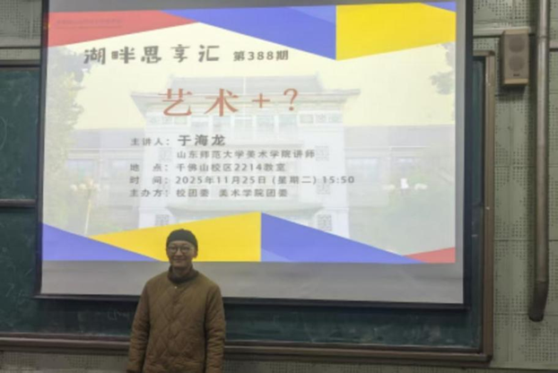 11月25日下午,校团委、美术学院团委于2312教室举办第388期湖畔思享汇之“艺术+?”专题讲座,讲座面向2023级全体同学,由山东师范大学美术学院讲师于海龙担任主讲。