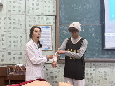 培训伊始,同学们一同观看了标准化心肺复苏教学视频。侯王君结合视频内容进行解析,着重强调了“评估环境、判断意识、呼救求援、胸外按压、开放气道、人工呼吸”这六大核心步骤。在心肺复苏模拟演示环节,侯王君从手掌交叠的姿势到开放气道的方式,为同学们进行了细致教学和规范展示。