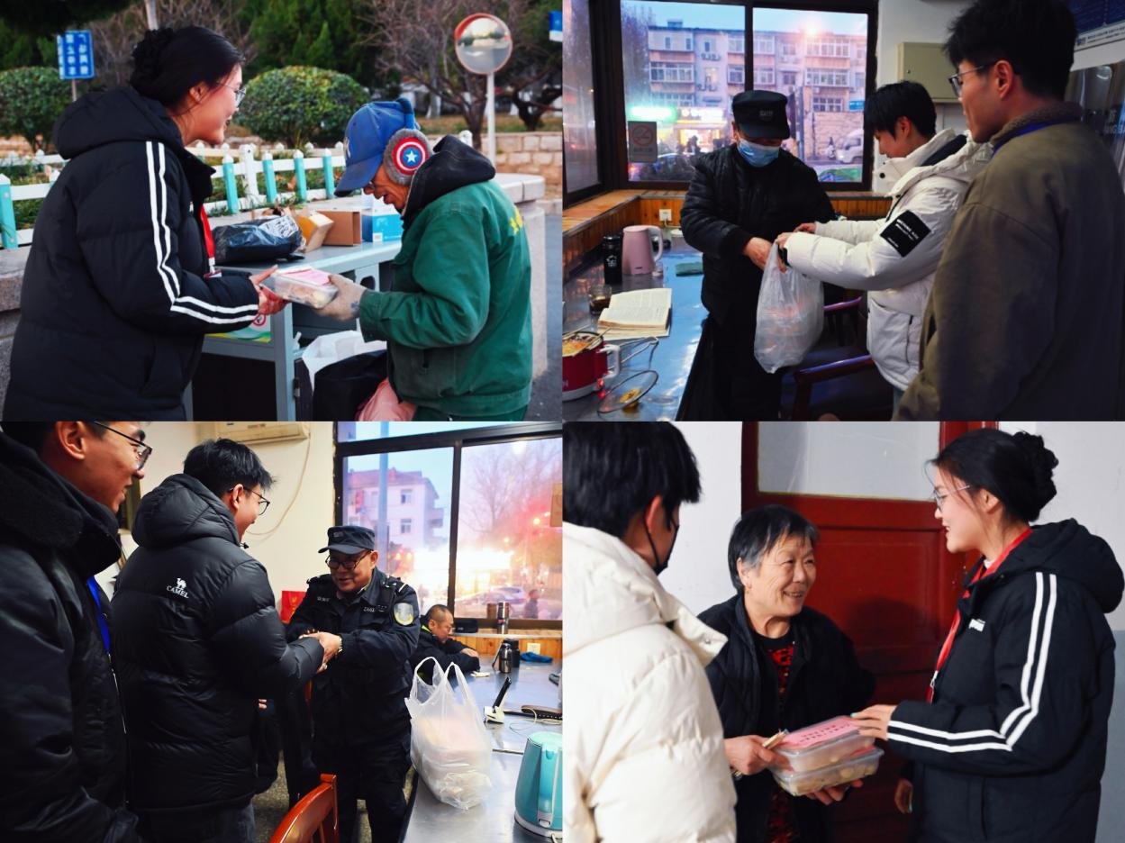 活动当天,志愿者们分组前往校园各个岗位,将封装完好的水饺逐一送到环卫工人、保安师傅和后勤人员手中。“天这么冷,能收到热乎乎的水饺,太暖心了!”刚完成校园清扫的环卫工人接过水饺,脸上露出朴实的笑容:校门口值守的保安师傅也感动地说:“没想到冬至还能收到学院的关怀,这份水饺吃在嘴里、暖在心里。”一句句真诚的问候、一份份暖心的水饺,让寒冬校园里满是温情。