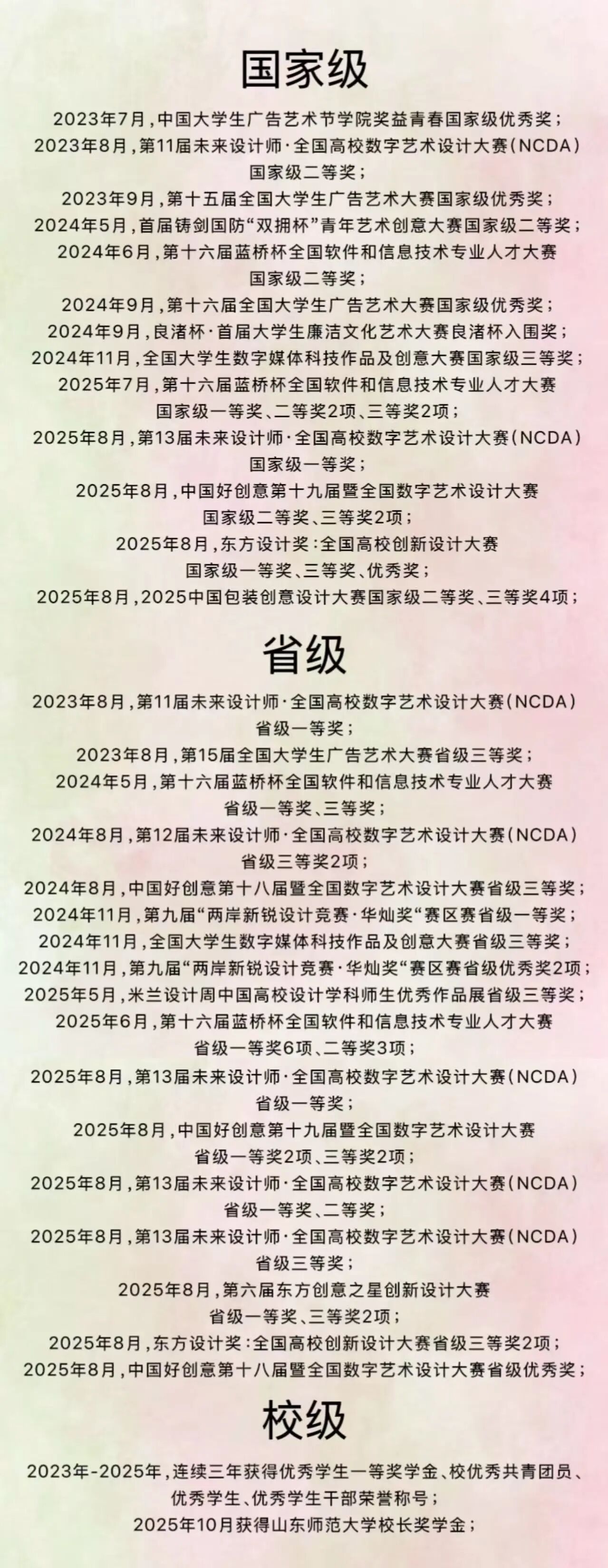 2025年3月至5月于山东师范大学附属小学担任美术教师并获得优秀实习;