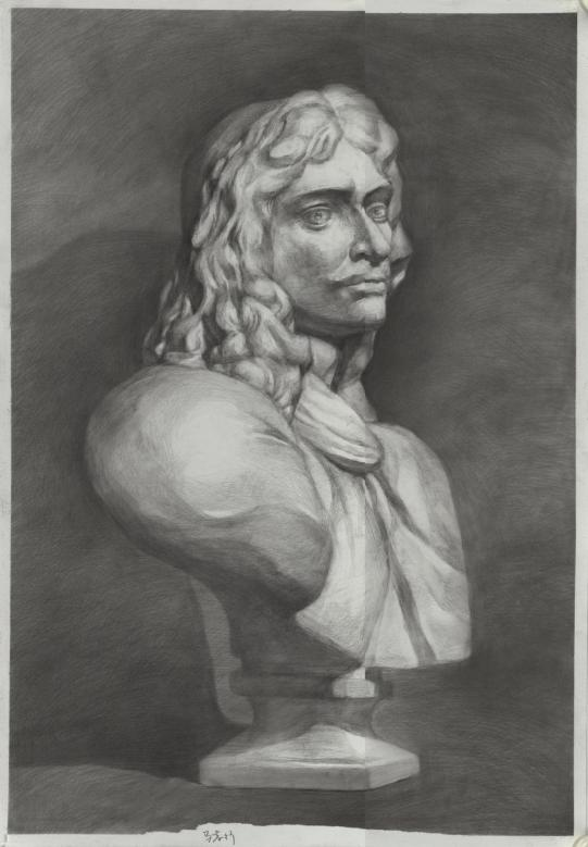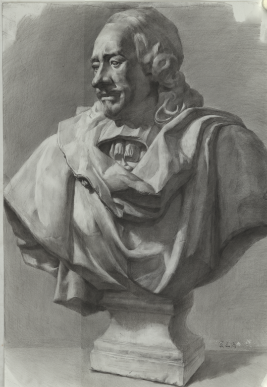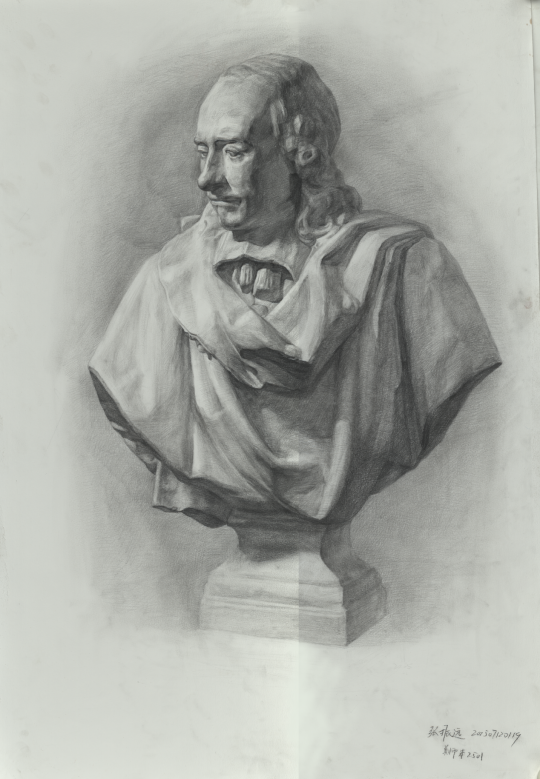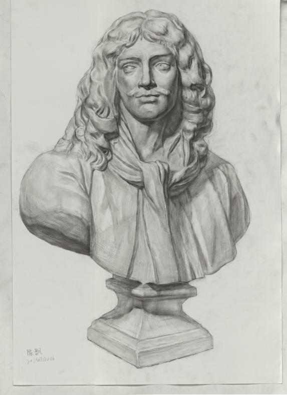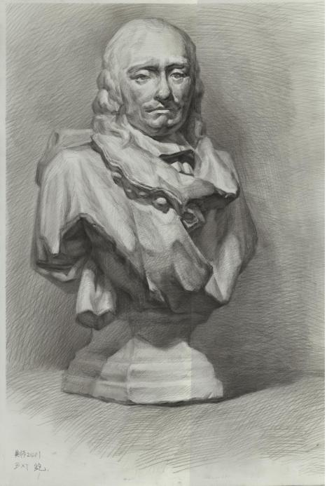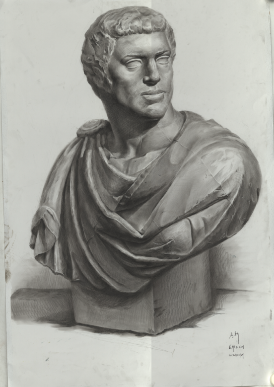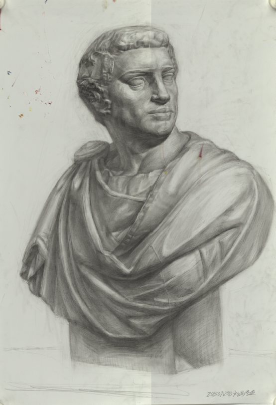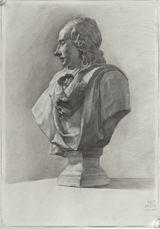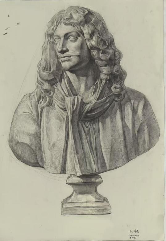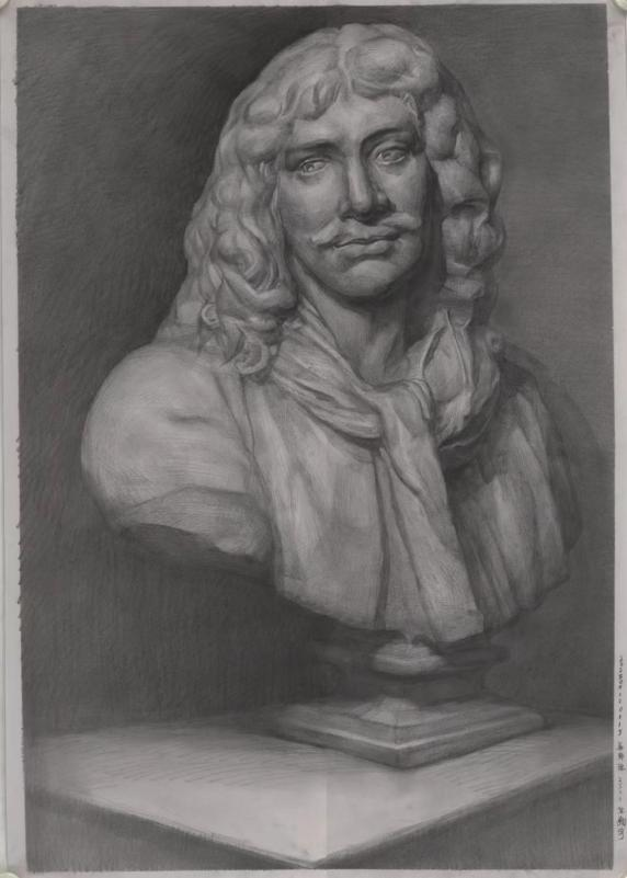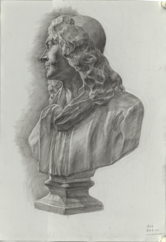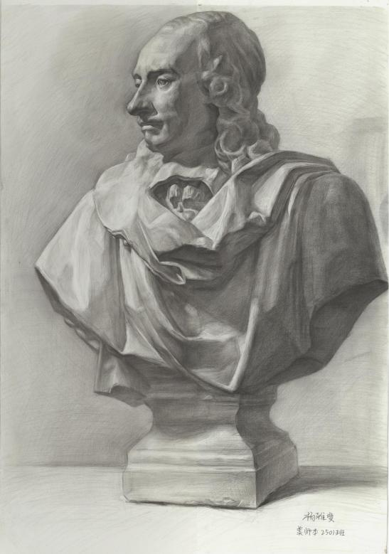 一笔一画打磨石膏的轮廓,褪去浮华的色彩,方知素描是造型艺术的基石。一笔一色勾勒出静物的轮廓与质感,定格的不仅是物象,更是此刻专注的时光。从最初对着石膏像描摹轮廓的机械复刻,到后来学会用整体观察的眼光捕捉明暗交界线与体积关系,这段与石膏像相伴的时光,不仅让我掌握了造型的基础技法,更完成了观察思维的蜕变。原来艺术的入门,从来都是先学会“看见”,再学会“表达”。