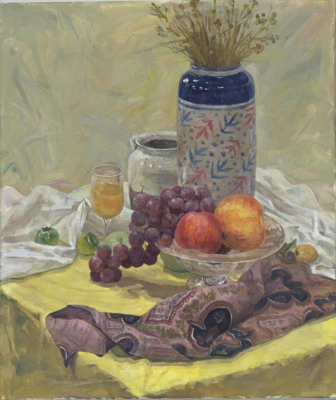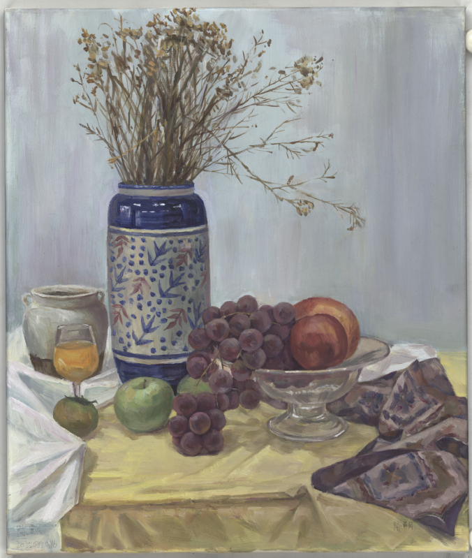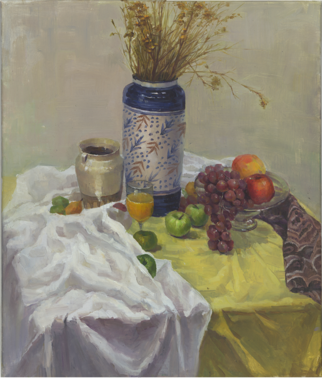 大一素描石膏像与油画静物写生的学习,让我实现了观察方法的转变:从最初孤立看局部细节,到学会整体观察、把握物象的比例结构与光影关系,油画中更懂得兼顾色彩整体调性与静物间的色彩关联,以整体视角观察到静物摆放中的形式美感,让观察成为绘画表达的基础。