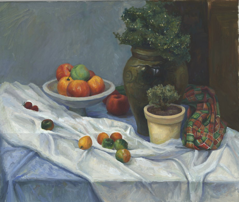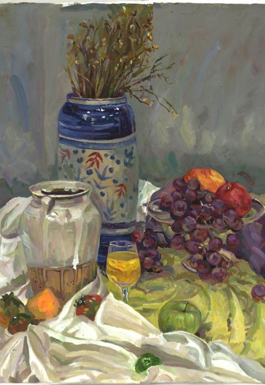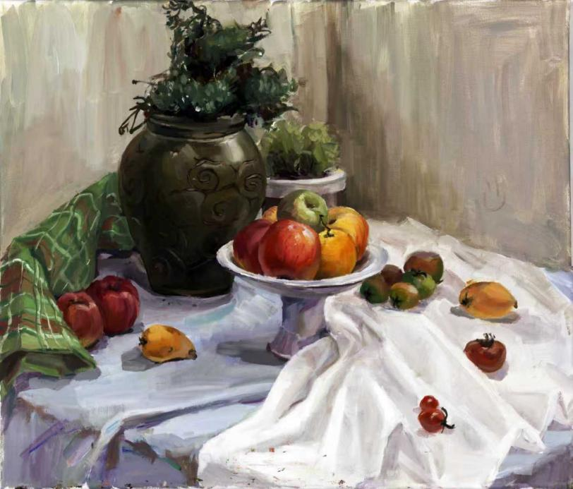 无论是素净的石膏像素描,还是斑斓的静物油画写生,一张张画作都见证着我的成长与感悟。得益于老师的悉心教诲,我开始留意事物中各点间连线的夹角,关注物体外形的流动性,用心体察团块与团块之间的组合关联。这改变了我观察的角度与方法,使我受益匪浅。