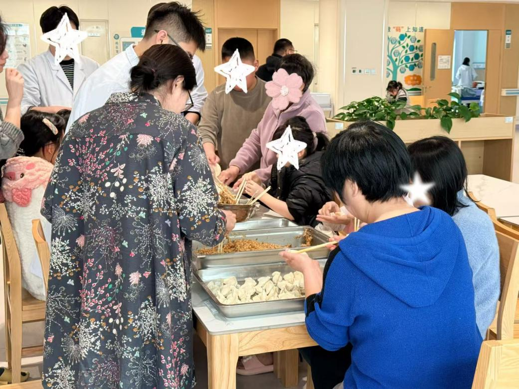 在青岛市精神卫生中心高新院区,美院学子参与到儿童青少年科康复活动中,他们通过组织手工包饺子等主题活动,协助医护人员引导青少年完成备料、制作与分享,在轻松的互动中帮助青少年舒缓情绪、提升社交能力。
