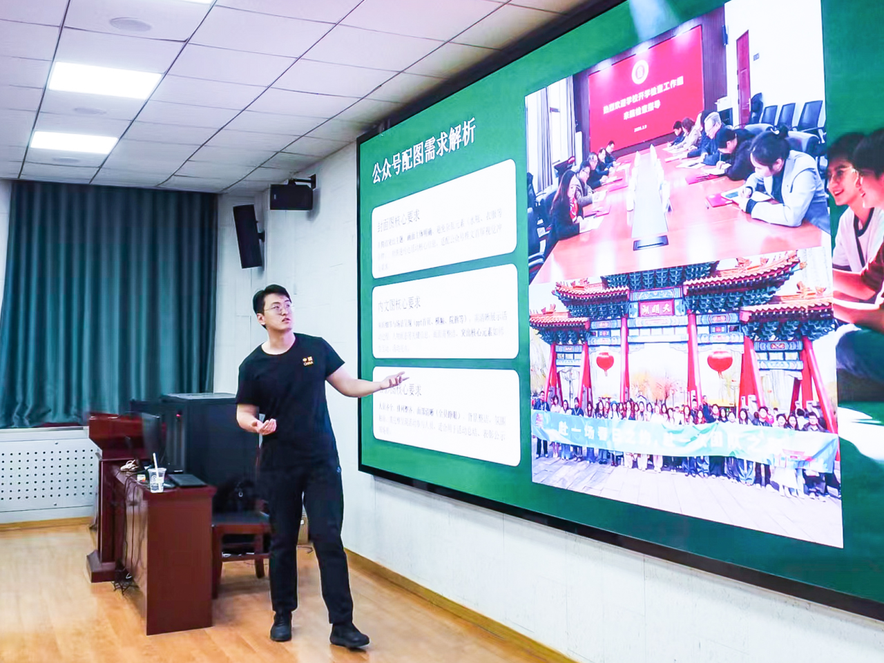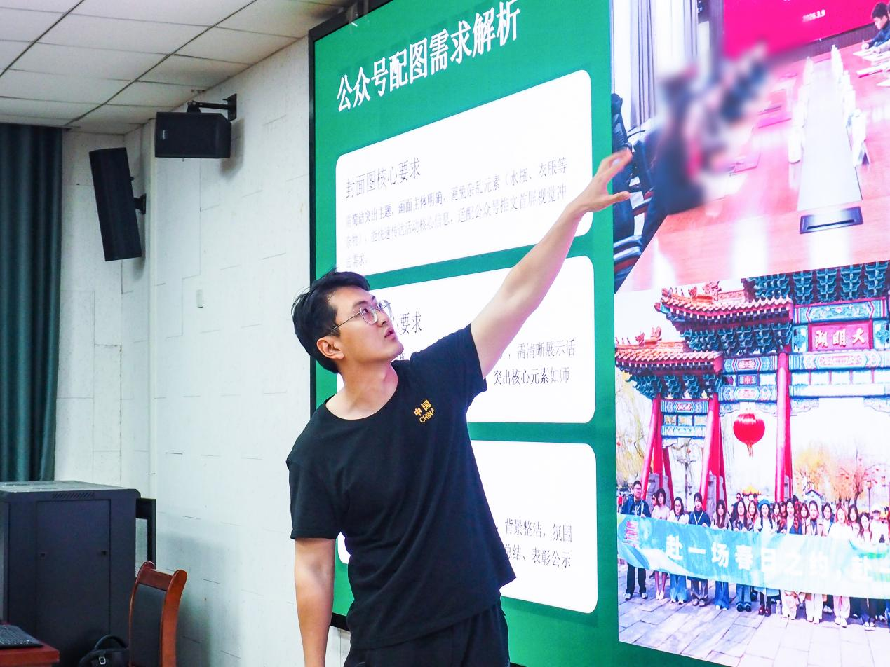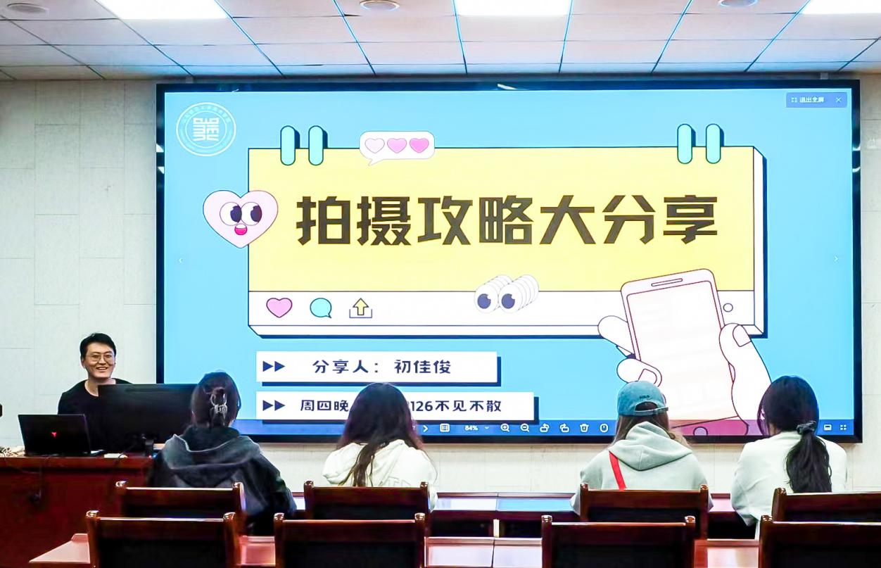 4月16日,美术学院在教学二楼2126教室举办摄影培训分享会。赫尔岑国际艺术学院摄影部部长雷越、部长初佳俊应邀主讲,主题围绕活动拍摄与公众号配图需求,分享核心拍摄技巧、现场引导方法与后期修图流程展开,融媒体中心成员到场参加。