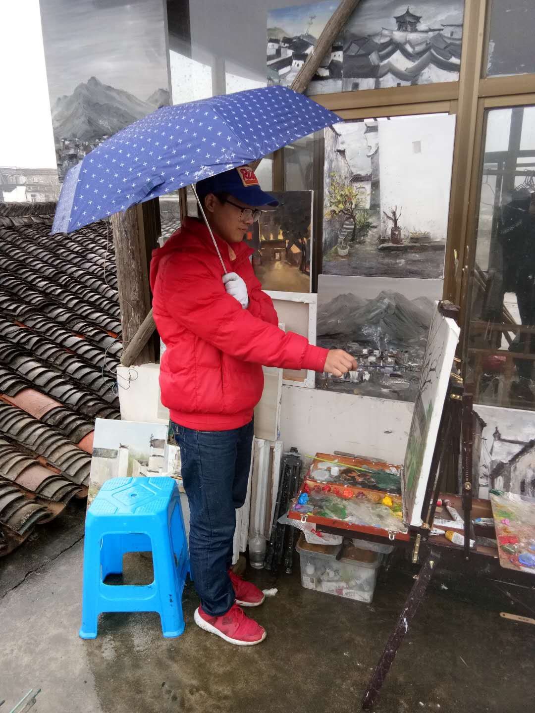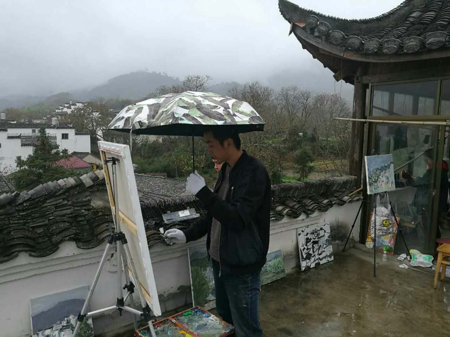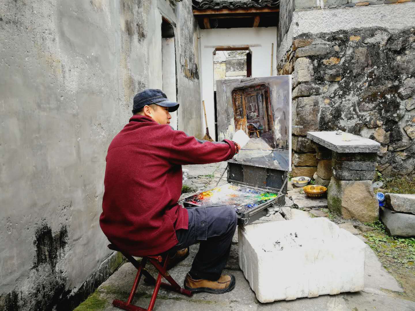 村头、巷尾、溪边、道旁……来来往往的人流当中,总有画家的身影。这个不大的村落里,有