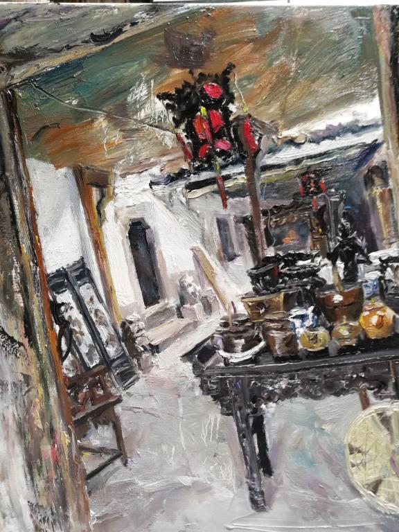 许多入画的美景,杂乱的庭院、古香的文玩店、发呆的石狮子、古老的祠堂、苍劲的老树、斑驳的白