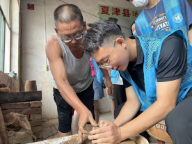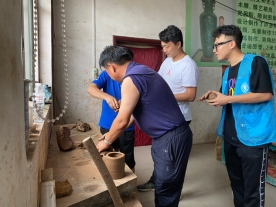 在省派第一书记、驻村第一书记刘兴波的带领下,社会实践服务队一行来到国家级非物质文化遗产代表性项目—刘文彬“运河黑陶工作室”研学实践。非遗传承人刘文彬老师向同学们介绍黑陶文化,介绍黑陶工艺历史、传承状况以及行业发展现状。在工作室,同学们看到了刘老师创作完成的1米—3米的大型黑陶器皿,同学们在得知刘老师作品享誉海内外时,民族自豪感油然而生。在刘文彬老师的带领和指导下,同学们体验了揉泥、拉坯的过程,在精细考究的制作过程中,感受到了黑陶传统手工艺的魅力。