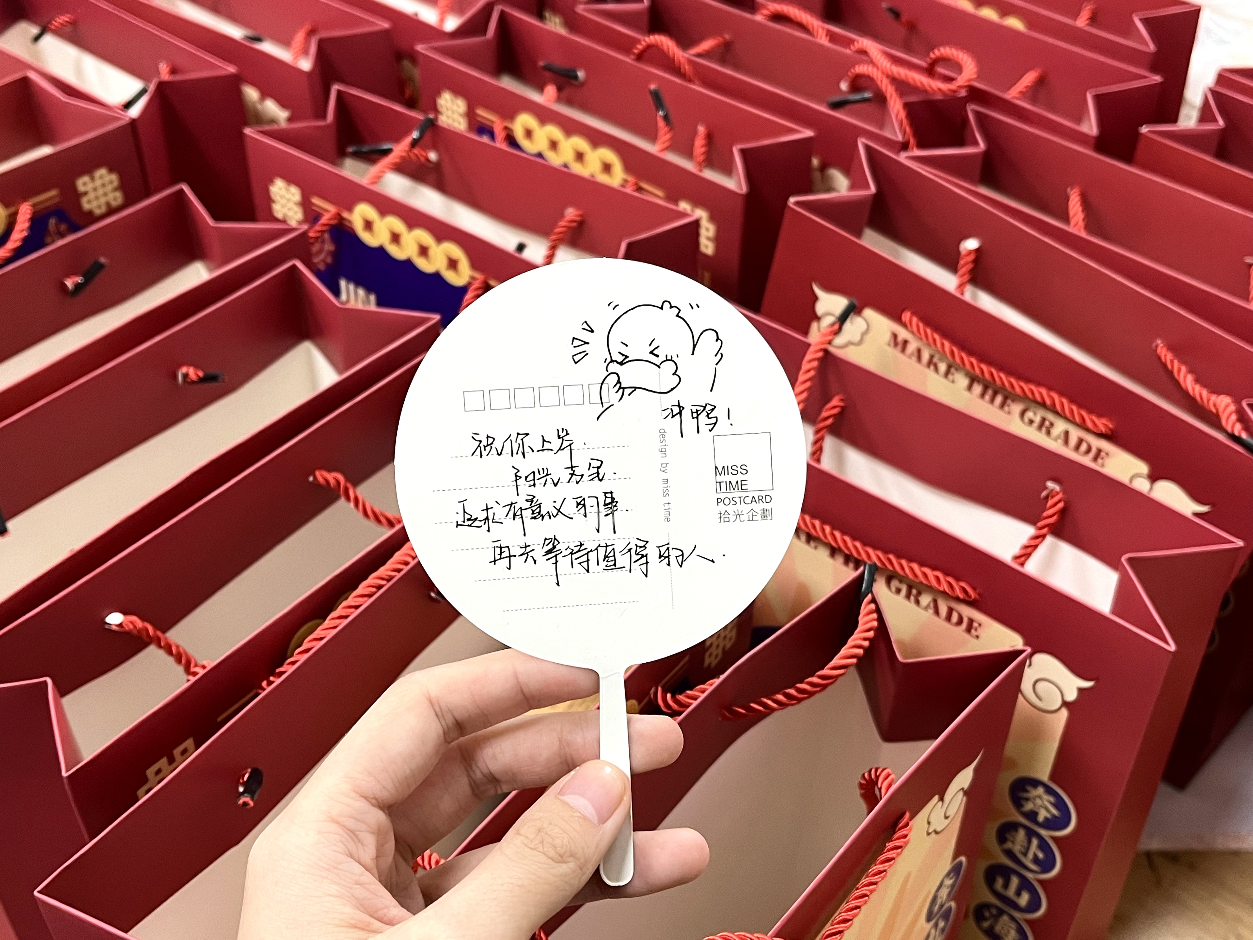 一张张充满祝福的寄语贺卡传递了师生们最真挚的祝福。“一切过往皆为序章,默默耕耘总有收获,念念不忘必有回响,此战必胜,金榜题名”,这是学弟学妹对学长学姐的温暖祝福,每张贺卡都表达了同学们对即将考研的学长学姐的关心和祝愿。