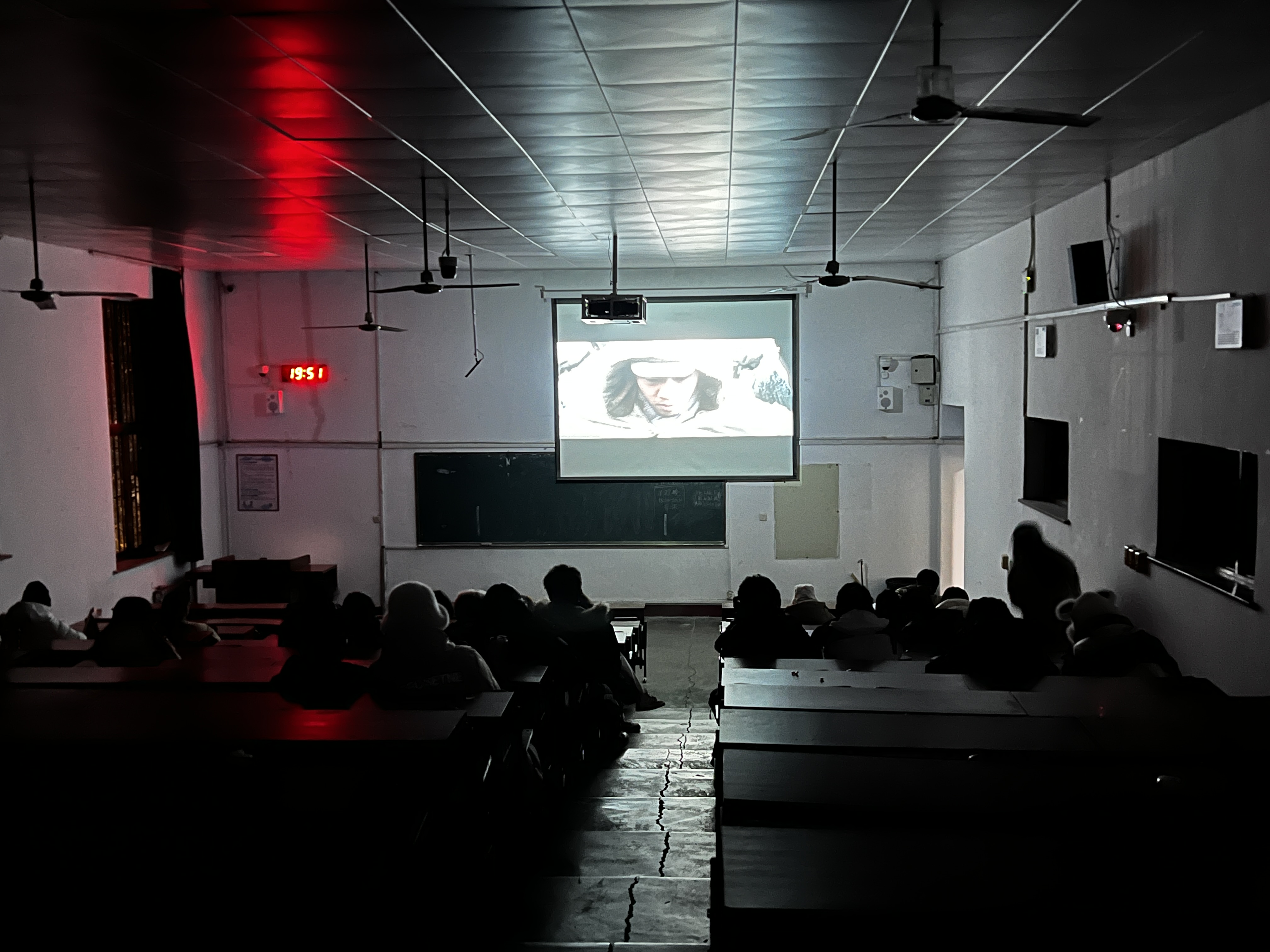 活动当天,同学们满怀激情地等待着影片放映。随着电影播出,全场肃静,同学们全身心投入到影片之中,并被影片内容深深吸引。