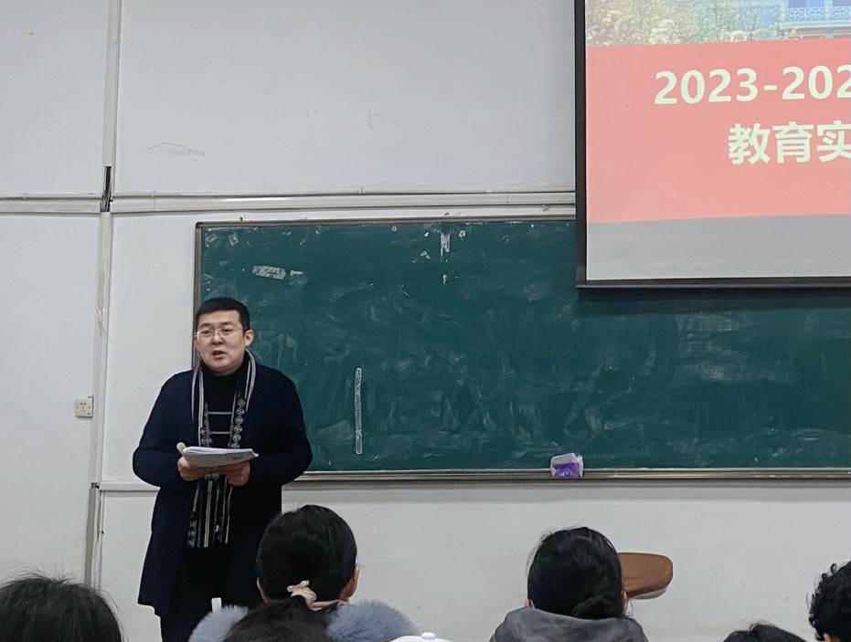 随后,吴磊院长对同学们提出三点要求。一是希望同学们在教育实习中做到知行合一、知技合一,实习是本科阶段重要的实践性教学环节,呼吁同学们抓好将所学专业理论知识进行实践验证的机会;二是深刻理解实习意义,从容面对实习的机遇与挑战;三是遵守实习纪律,注意实习安全,展现山师学子的良好风貌。