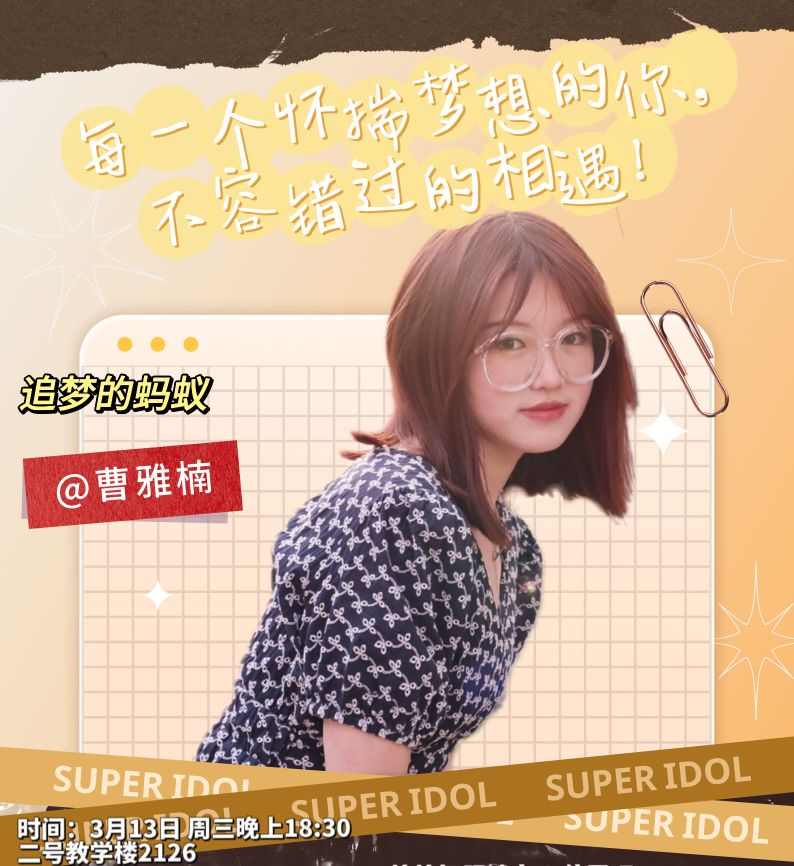 为营造浓厚的学风氛围,发挥优秀朋辈榜样力量,3月13日晚,美术学院邀请2020级视觉传达设计专业保研学生曹雅楠在二号教学楼2126分享成长经验。此次分享会吸引了众多2022级美术学和环境设计专业的同学前来学习。
