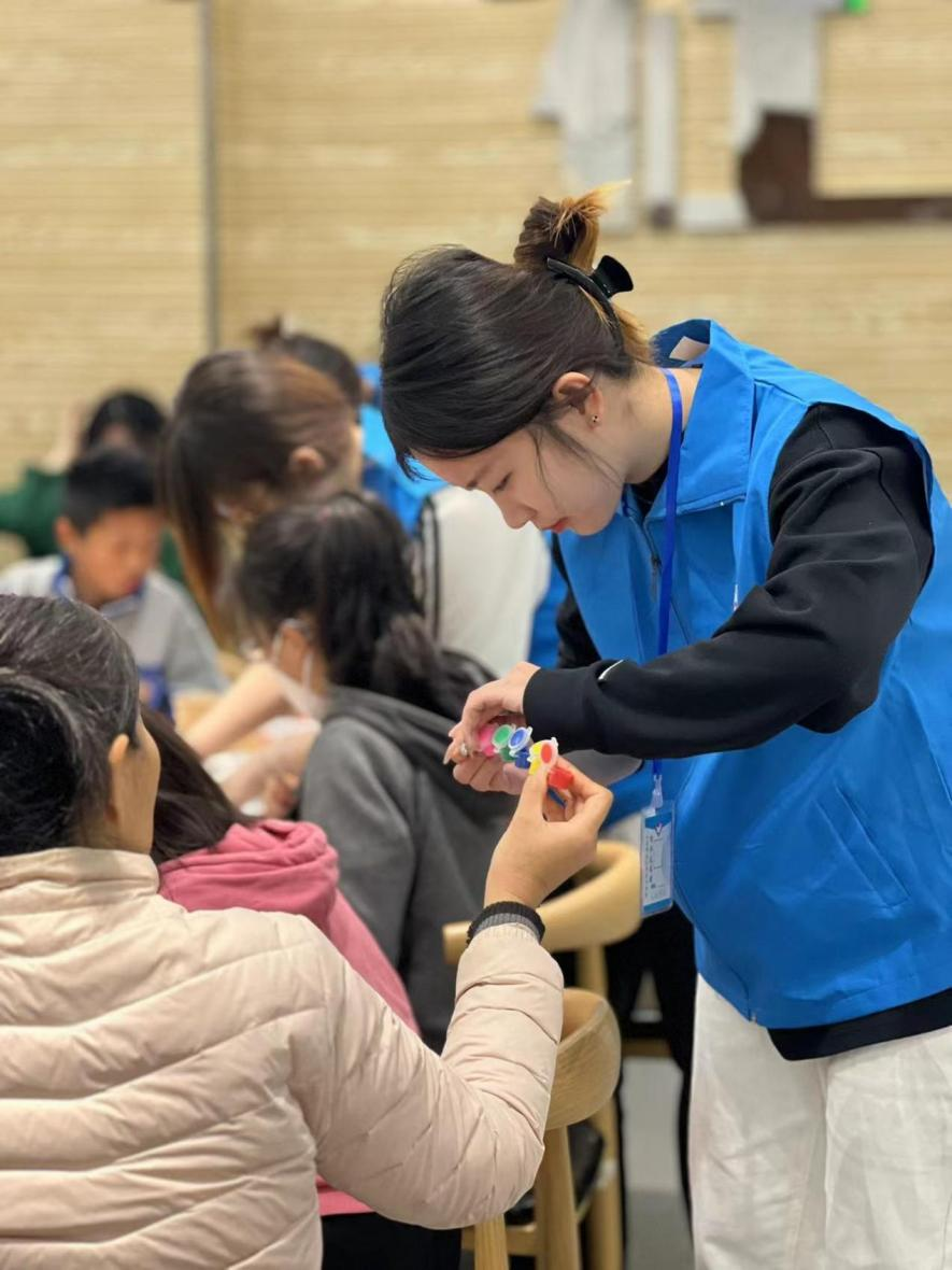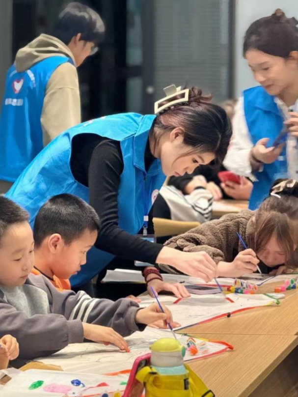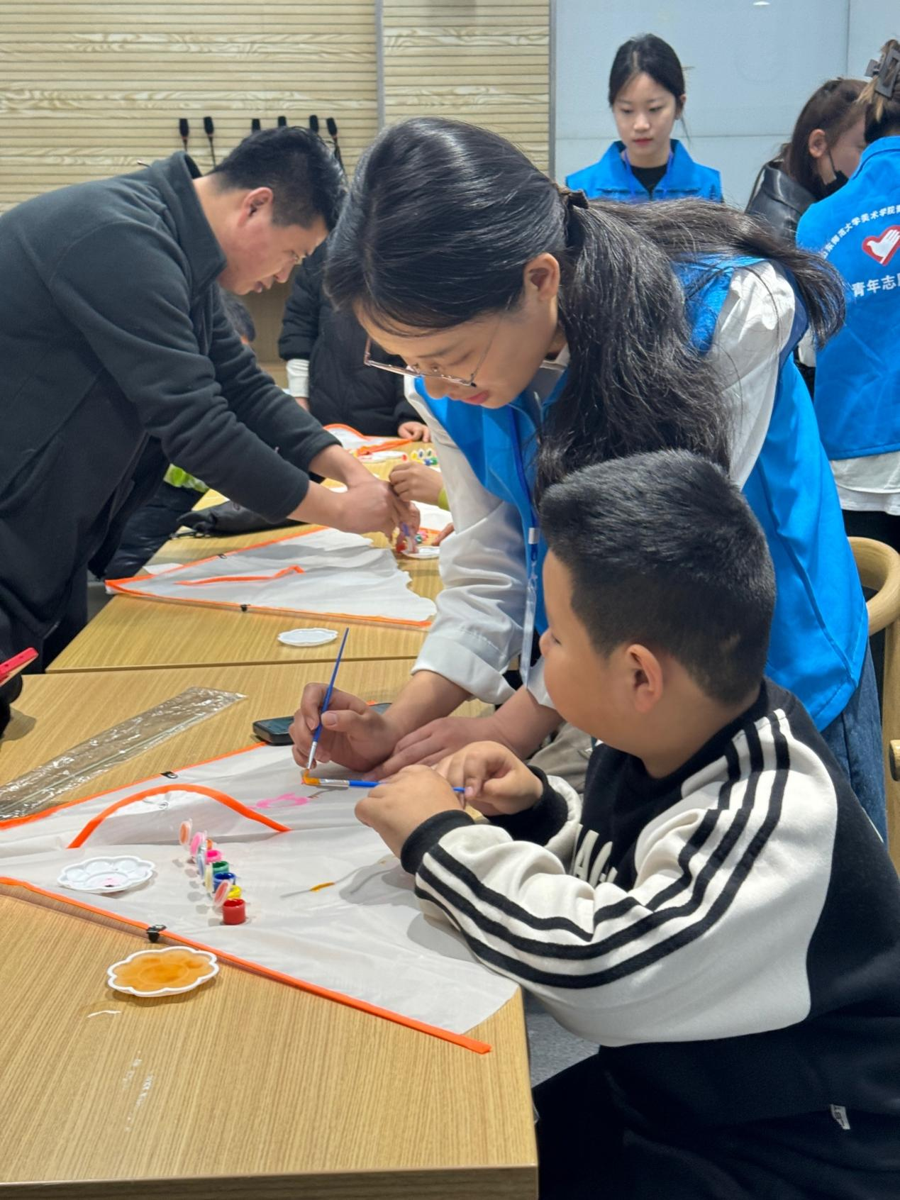 活动现场气氛热烈,在制作过程中,志愿者们与孩子们密切互动,鼓励他们大胆尝试,积极表达自己的想法。孩子们也展现出了出色的动手能力和团队合作精神,他们互相帮助,共同完成风筝的制作。
