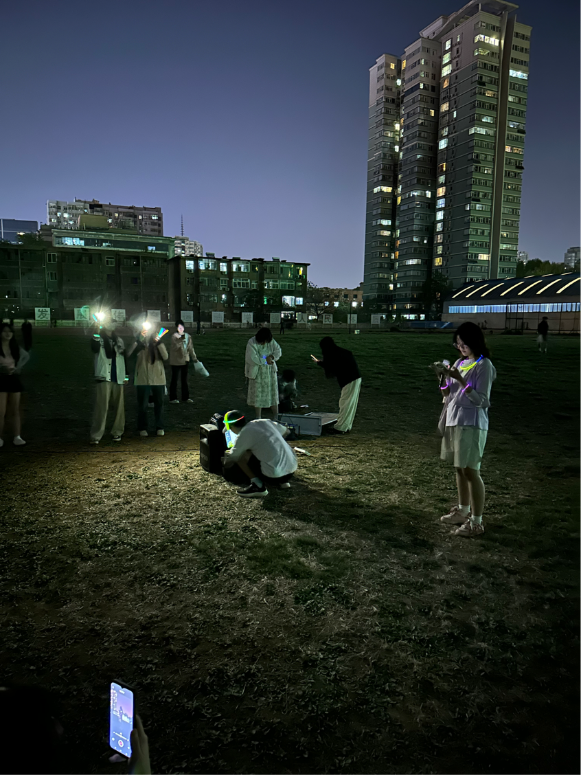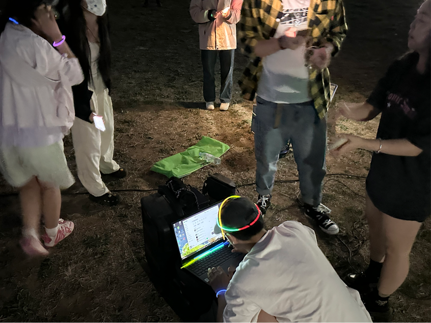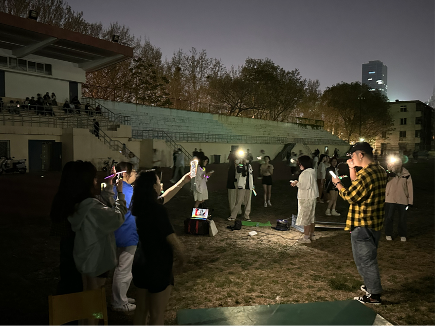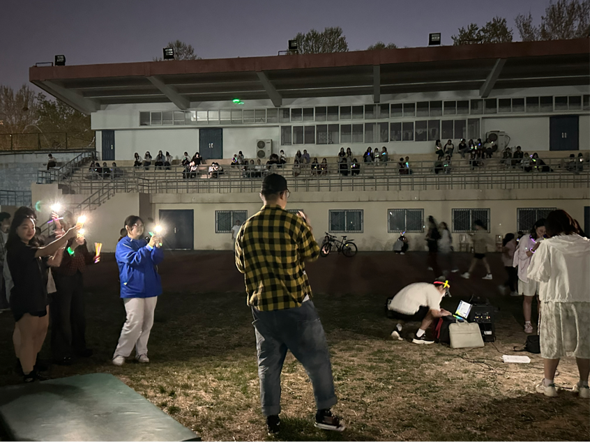 从傍晚时分开始,音乐节现场渐渐热闹起来。同学们三五成群,共同期待着演出的开始。吉他社的成员们调试设备后寻找状态想为同学们带来最佳的音乐体验。同学们轮番上阵,用动听的歌声打动着每一位听众的心。而那春天的夜色、微醺的微风和闪烁的星光,共同构成了这场音乐节最美的背景。
