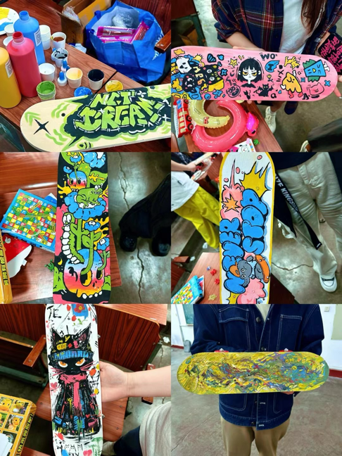 此次活动不仅是一场视觉的盛宴,更是一次心灵的旅行。同学们在通过涂鸦滑板的创作过程,培养了艺术审美与动手能力,同时加深彼此之间的交流与合作。