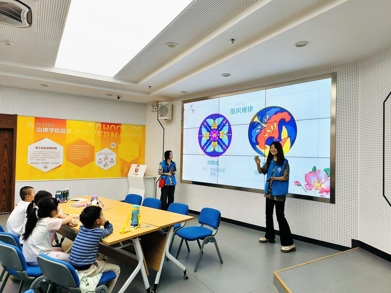 在活动现场,我院志愿者燕翔和丁新洁担任PPT讲解,他们以生动有趣的方式向孩子们介绍了《美丽的纹样》。孩子们聚精会神地聆听着,眼中闪烁着好奇和期待的光芒。