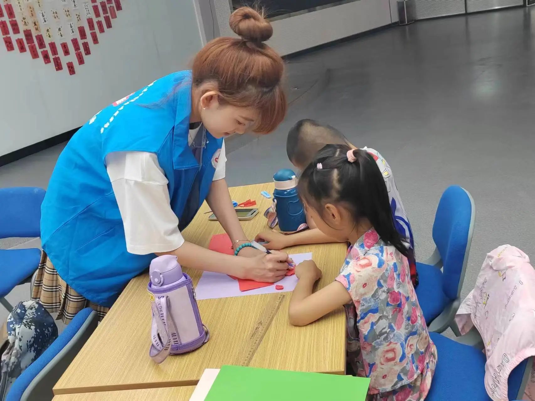 孩子们拿起剪刀,认真地构思着自己的创意,一下下地剪出祝福、剪出新意。家长们也动手加入制作中,增加了亲子活动时间。