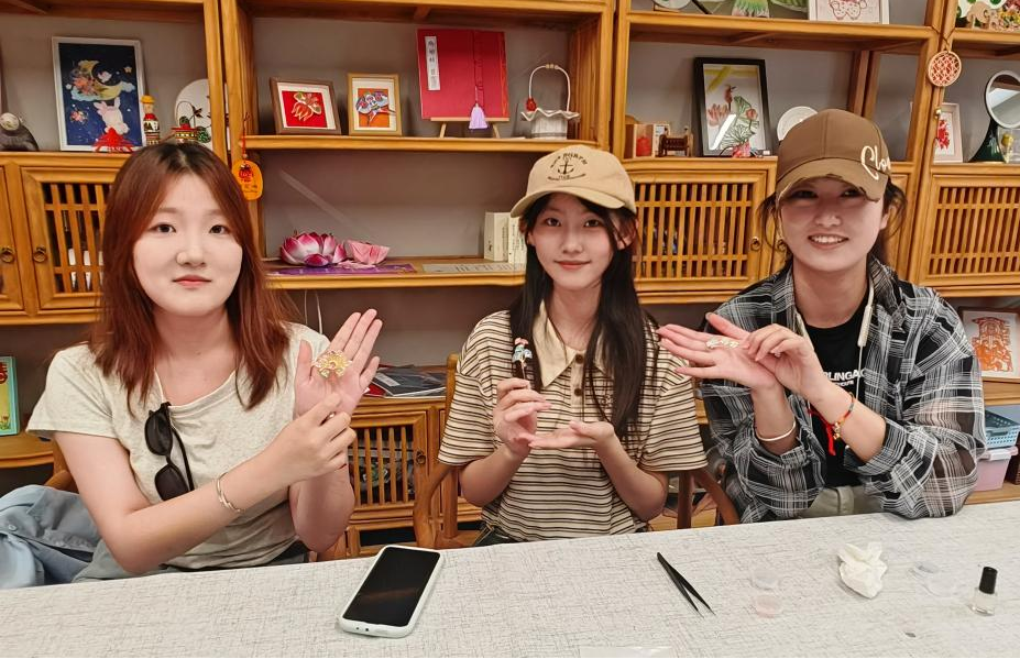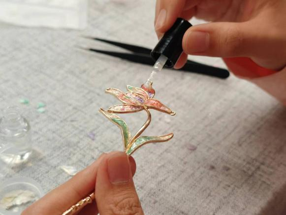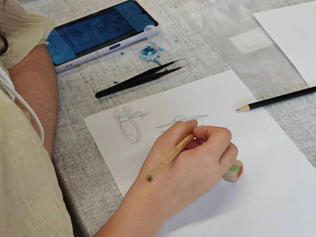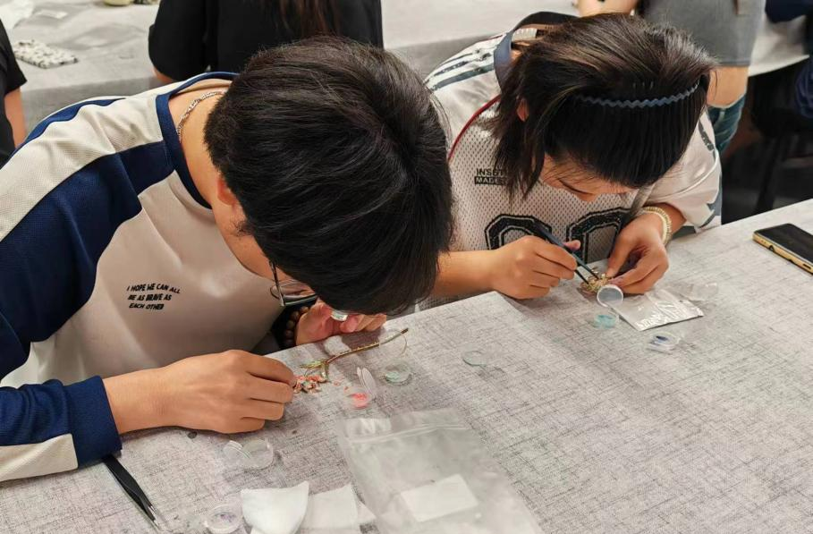 活动过程中,学生们在老师的指导下,用各种材料和工具制作螺钿饰品。大家不仅学会了如何镶嵌螺钿,还尝试了如何进行色彩搭配和设计。
