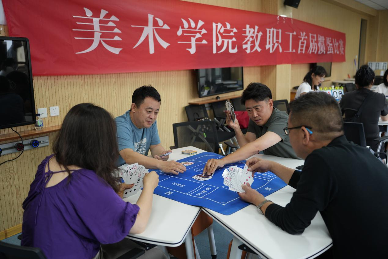 为丰富教师业余生活,山东师范大学美术学院于5月30日下午在三号教学楼3511举办了“首届教职工掼蛋比赛”。党委书记胡晓明与众多教师共同参与、体验了这场智慧与谋略的较量。