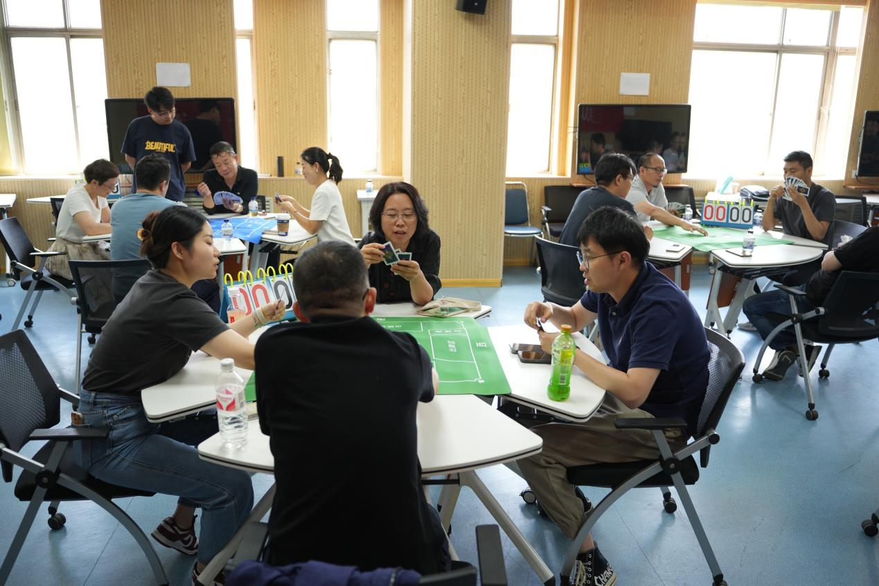 比赛现场,两“军”对垒,四人一组展开激烈角逐。选手们目光如炬,或果断出击,或深思熟虑,现场气氛紧张而热烈。选手们每一次出牌都凝聚着智慧与谋略,充分展现了教师们良好的精神风貌和团队合作精神。