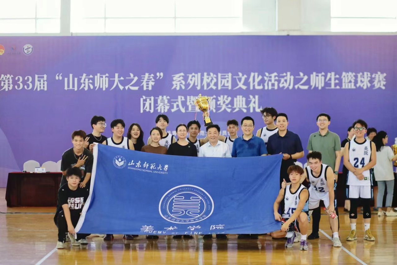 6月13日,山东师范大学在长清湖校区体育馆成功举办第33届“山东师大之春”系列校园文化活动之师生篮球比赛闭幕式暨颁奖典礼,学校党委副书记万光侠出席活动并颁奖,学院党委书记胡晓明应邀参加活动。美术学院男子篮球队在本届比赛中,一路过关斩将,最终成功问鼎,夺得冠军。此次夺冠是美术学院近年来首次摘得篮球桂冠,取得了里程碑式突破,创造了新的历史。