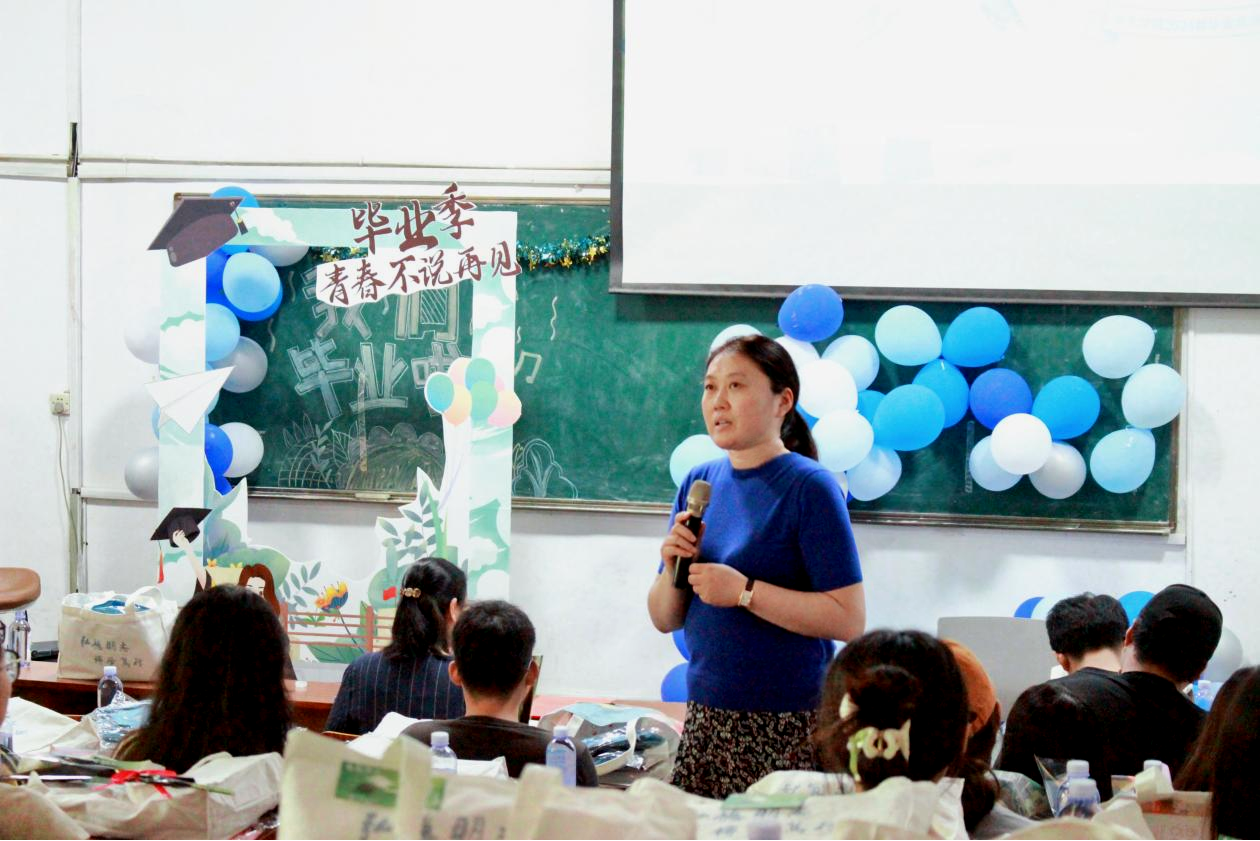 葛晓霞在主持活动时,与同学们重温了大学生活的美好时光,追忆了与同学们的点滴,并对同学们寄予厚望,勇敢地去追寻自己的梦想,在人生的道路上绽放璀璨光芒。