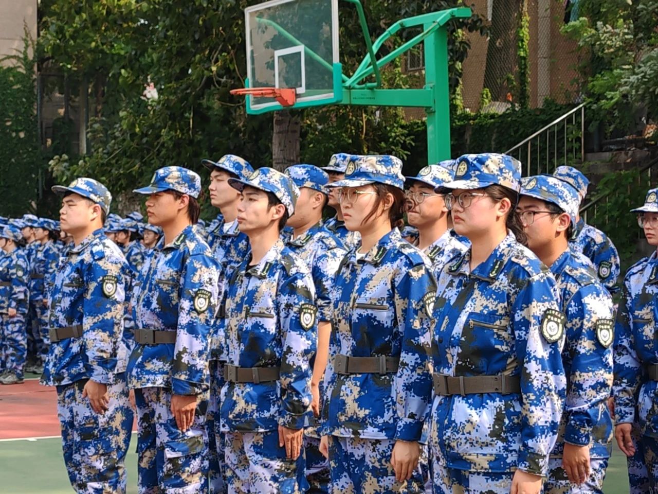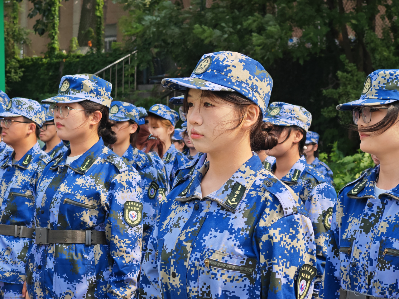 同学们身着迷彩,
