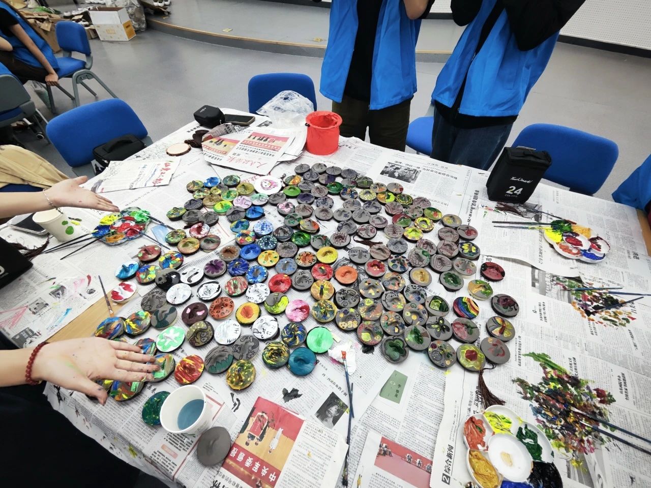 在本次活动中,瓶盖DIY环节成为了本次活动的热点,吸引了众多志愿者的参与。这一环节既有趣味性又充满创新,各部门志愿者围坐一起,聚精会神地制作着各具特色、风格独特的瓶盖、木桩装饰画。作品风格多样,有的细致精巧,有的随性洒脱,有的充满童趣,有的简约大气。在欢声笑语中,一个个漂亮的作品逐渐呈现,大家在一起展示作品,充满了成就感。