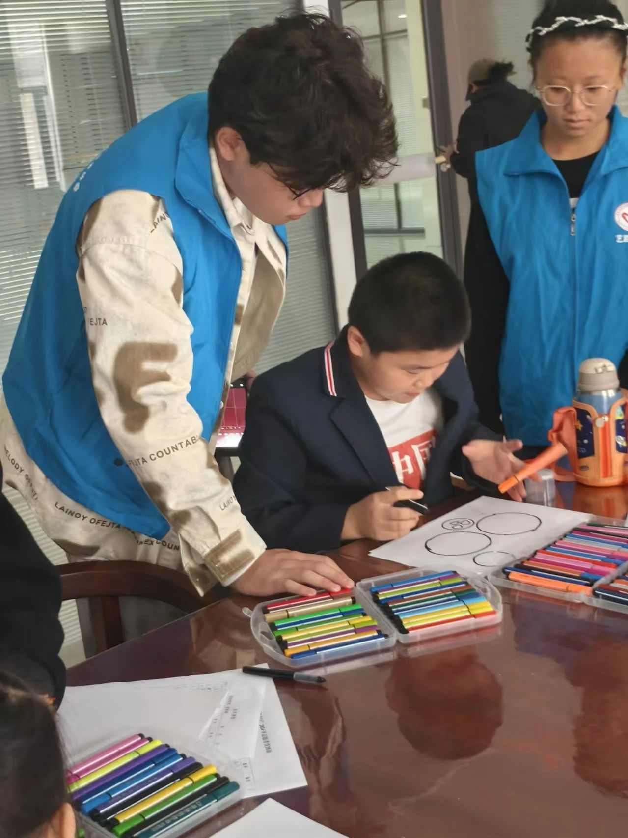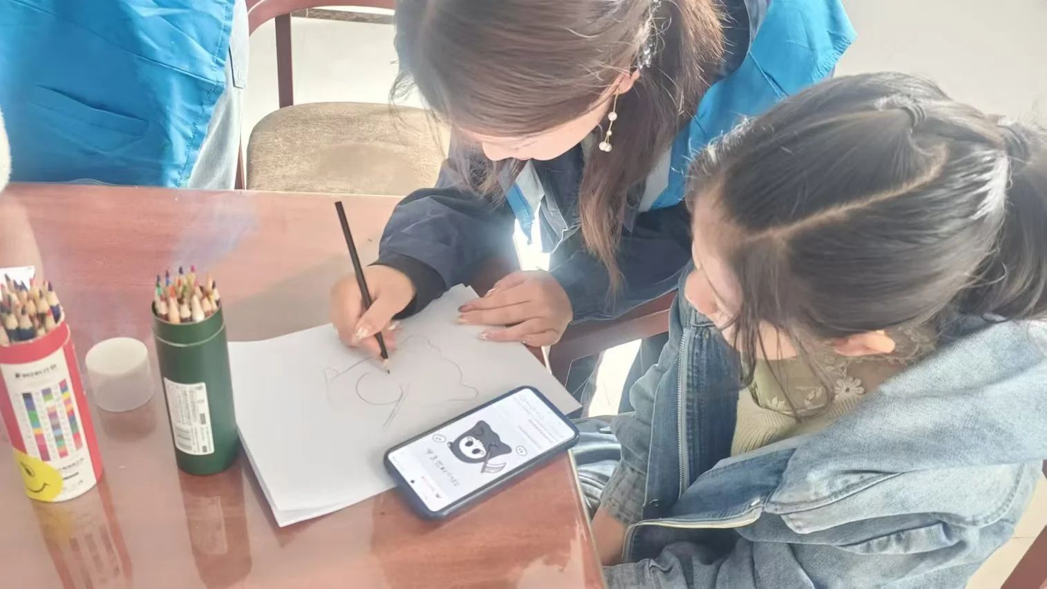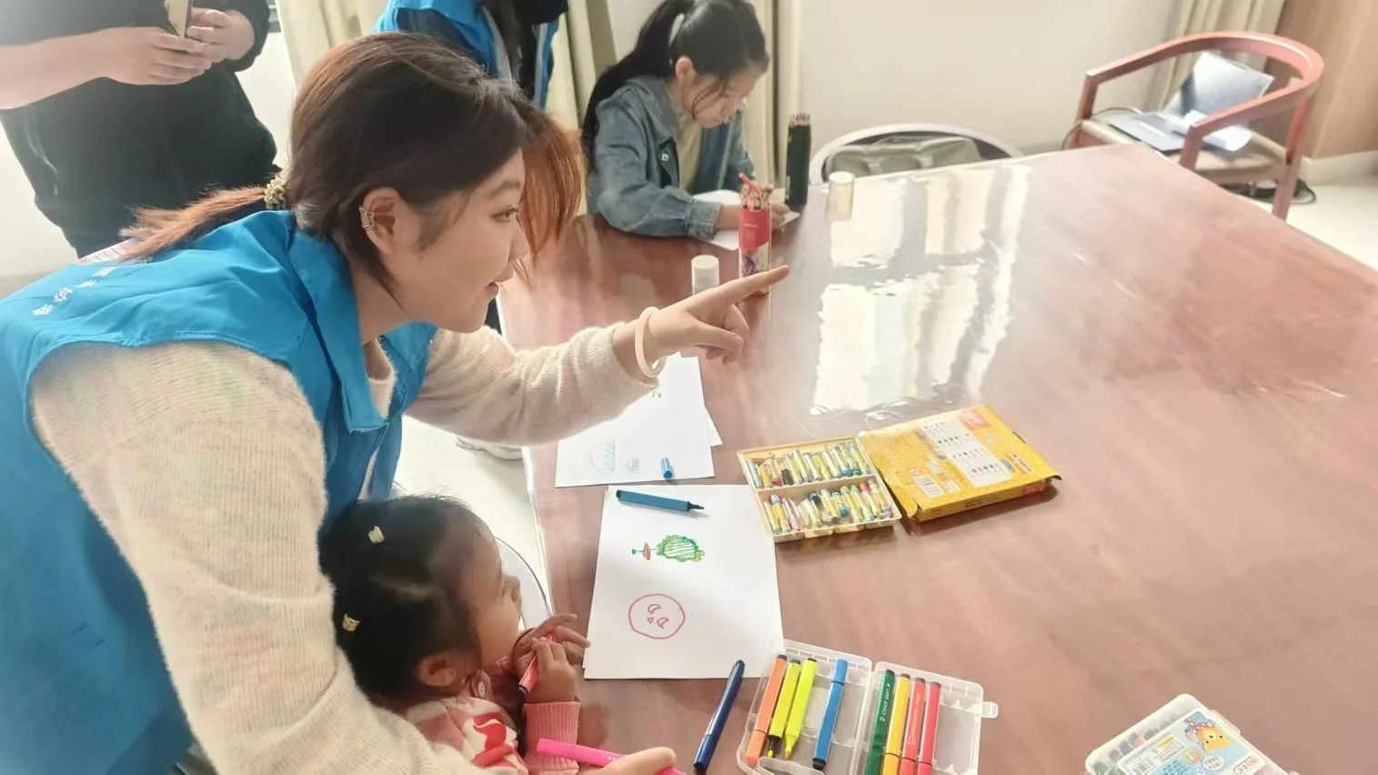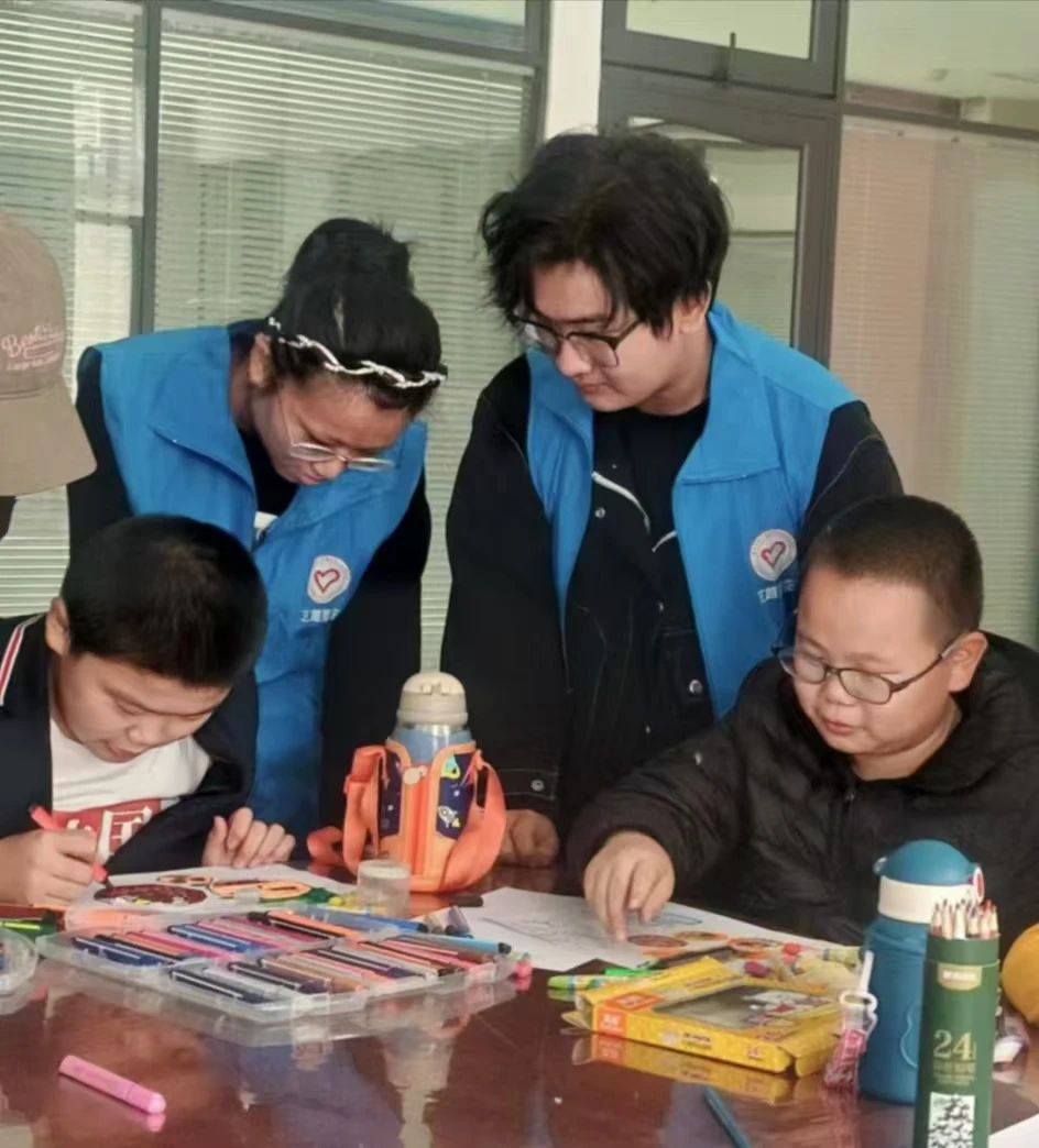 绘画过程中,志愿者们耐心对孩子们进行充分引导,孩子们在志愿者的帮助下大胆进行尝试,展现出属于童年时期特有的想象力和创造力。志愿者们与孩子们相处融洽,打成一片。