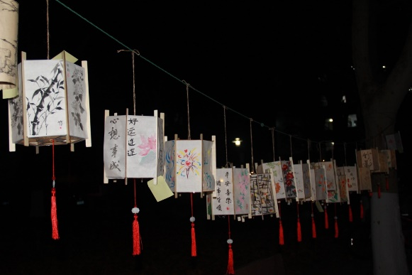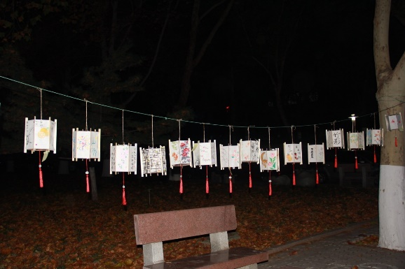 活动结束后,同学们将绘画作品组装成灯笼悬挂于美术学院南门两侧,作为校庆期间的装饰,增添校庆氛围。这一个个灯笼如同绚烂的烟火,瞬间点燃了全场的氛围,吸引了多个学院的学生欣赏,赞叹声此起彼伏,将比赛推向了高潮。