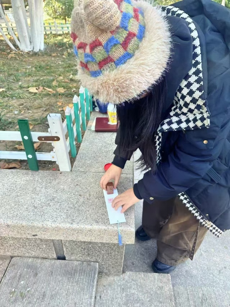(工作人员在为完成游戏任务的同学盖章)