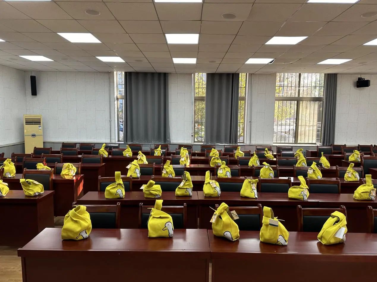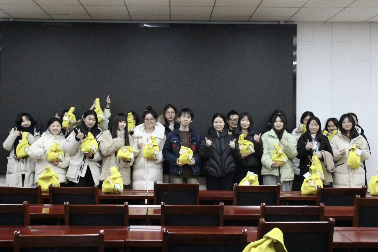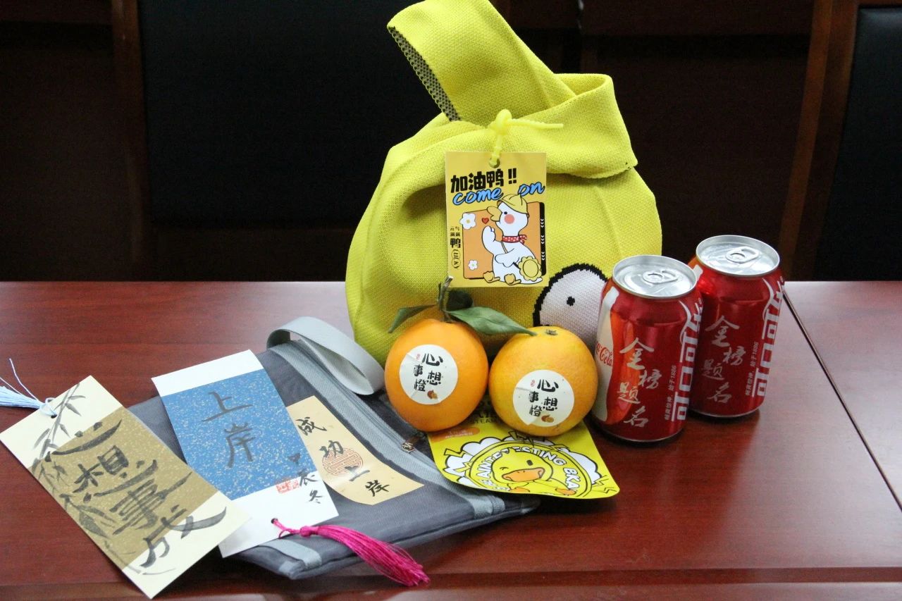 随后,领导老师向每位考研学子送上了学院精心准备的“加油鸭”考研加油包。礼包中包含了蒸汽眼罩、橙子、文件袋、书签和可乐等物品,寓意考研学子定能“蒸”蒸日上、心想事“橙”、非你不“可”。