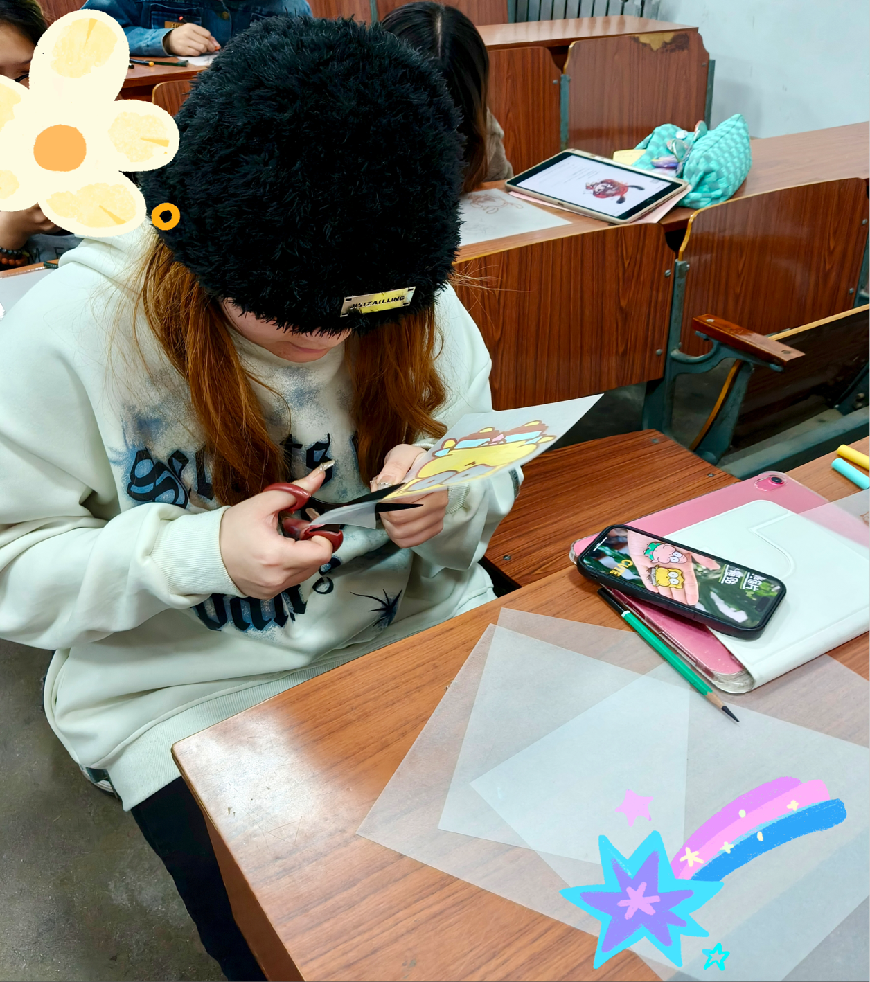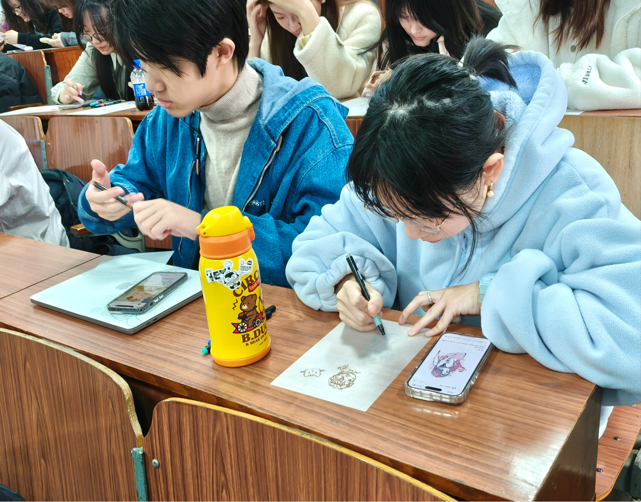 活动现场,同学们学习了热缩片制作步骤,并积极交流创作心得,分享技巧和经验,激发了更多灵感火花,为艺术创作注入新的活力。