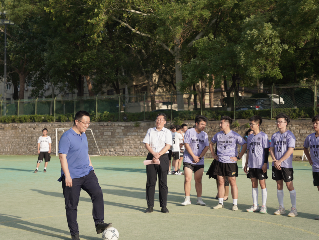 崔勇鼓励全体运动员发扬“友谊第一,比赛第二”的体育精神,赛出风格、赛出水平,在绿茵场上书写出属于山师学子的青春华章。