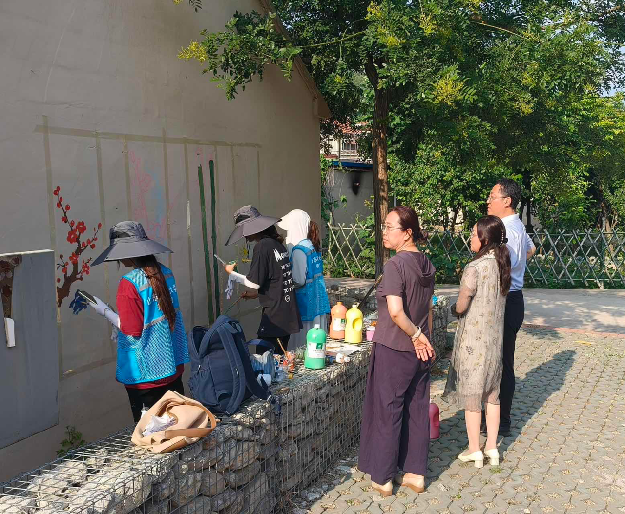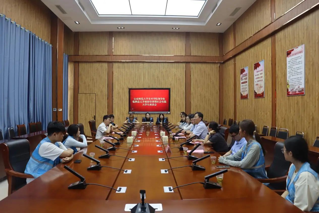 崔勇表示,学院组织服务队赴临朐开展暑期社会实践活动是落实学校与临朐县人民政府战略合作框架协议的具体举措,是充分发挥学科专业特色助力乡村文化振兴的生动实践,希望双方通过艺术创作、文化研究、品牌共建等多元形式,实现教育链与产业链的深度融合,努力打造校地协同发展新平台,为地方乡村文化建设和学校人才培养质量提升做出积极贡献。王晓雨、井洪波对我院师生开展乡村美化和形象提升实践活动表示热烈欢迎,对同学们冒酷暑连续奋战搞创作的精神给予充分肯定,表示将周密安排、加强协调,为服务队提供大力支持和有力保障,确保圆满完成实践任务。