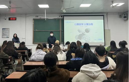 最后,从参与竞赛的选题确定、团队组建、实践调研、注意事项等方面提出建议,她以典型实例引导同学们通过关注热点事件挖掘选题、创新切入点,以专业优势助力解决社会实际问题,实现创新创业项目的落地。
