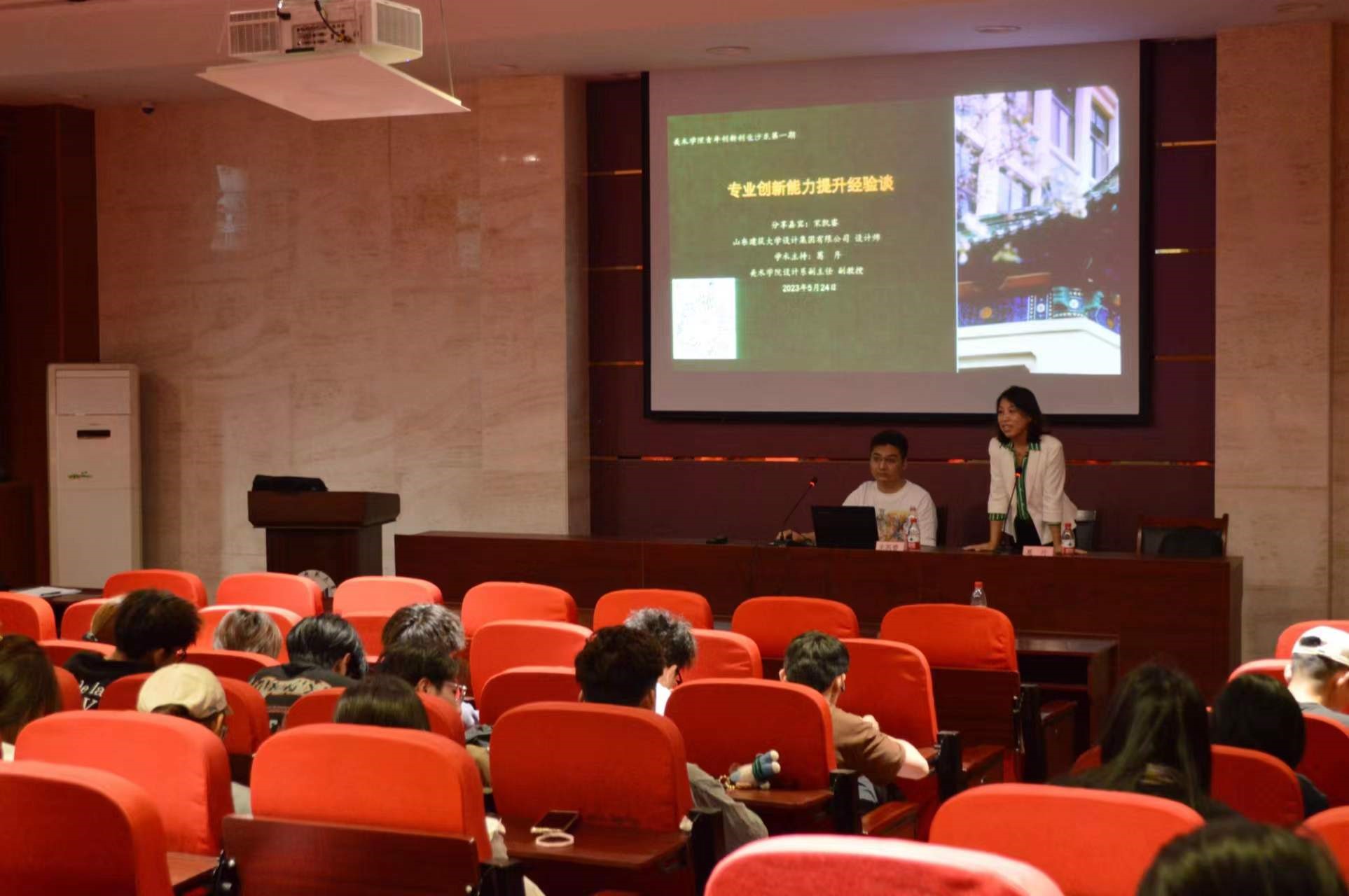 5月24日晚,美术学院首期青年创新创业沙龙活动在千佛山校区教学三号楼3155报告厅举行。活动邀请山东建筑大学设计集团有限公司设计师宋凯睿担任主讲嘉宾,美术学院设计系副主任、副教授葛丹担任学术主持。2020、2021、2022年级环境设计专业学生参加。