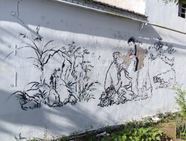 在这短短的五天时间里,同学们都全身心投入到紧张的墙绘之中,面对酷暑,为了按时完成绘画,同学们都起早贪黑的进行创作与绘制墙面。伴随着最后一笔的落下,同学们都露出了会心的微笑。在同学们神奇的画笔下,原本朴素的白墙面焕然一新,一条独具特色的前岳村文化长廊就此诞生。该长廊以中华传统文化为主题,共计六七百平,每个版块下,均配有栩栩如生的人物画像,及与主题相符的名言、诗句等,深受广大村民的喜爱。