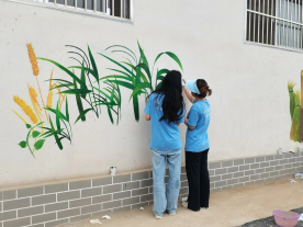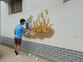 在一周的时间里,同学们采用了多种绘画技巧,积极协作,完成了部分墙绘任务。同学们充分发挥各自的特长和优势,紧密结合苏海村文化和乡村特色,呈现了丰富多样的题材,以通俗易懂的艺术创作,展现了乡村振兴和生态文明理念等内容,用一幅幅主题鲜明、风格各异的墙绘作品装点乡村,使得单一乏味的陈旧围墙变身成一道亮丽的风景线。