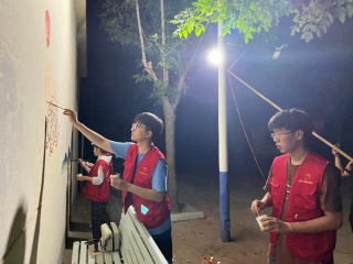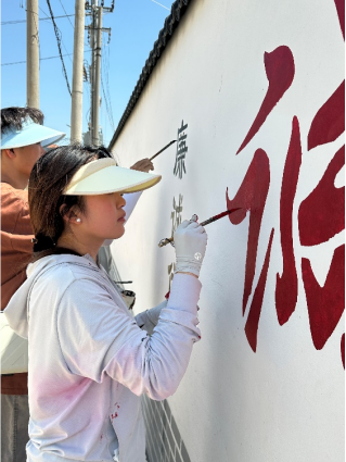 正值盛夏,烈日炎炎,同学们用手中的画笔把当地历史文化以村民喜闻乐见的方式绘制到墙面上,赋予墙壁新的面貌。一墙一文化,一画一风景,队员们在实践中受教育、长才干,在潜移默化中传递美丽乡村的精神内涵,为助力乡村振兴汇聚青春力量。