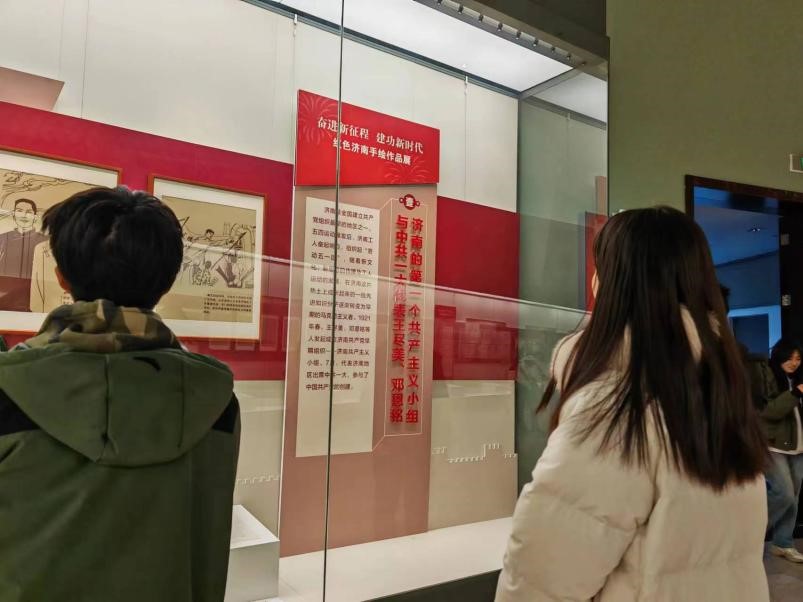 “《红色济南手绘作品展》通过复制放大,以艺术的形式生动的反映了济南早期党组织的创建、斗争、发展历程,集中展现了红色济南的光辉历史。观赏着一幅幅作品,跟随着历史的足迹,心中的红色也不禁汹涌澎湃,我定将延续共产党人精神血脉,以实际行动助力新时代社会主义现代化强省会建设。”