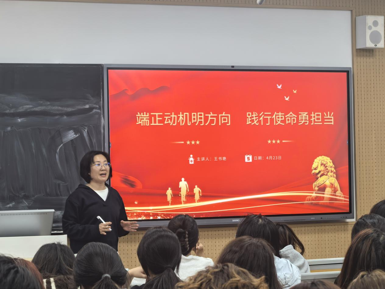 4月23日,美术学院臻美团校开展“端正动机明方向,践行使命勇担当”主题团课,本次团课由王书艳担任主讲人,50余名入团积极分子参加学习。