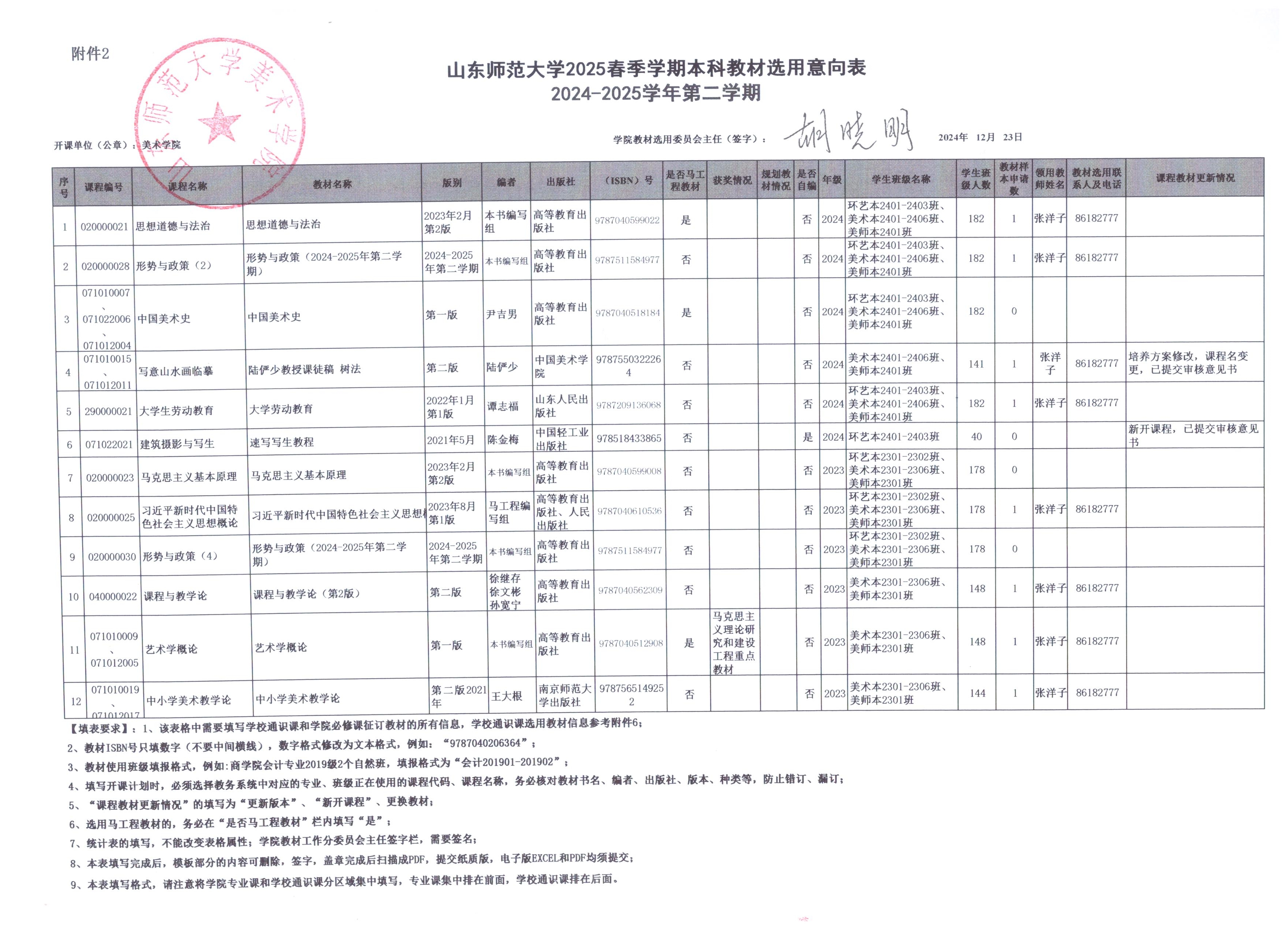 美术学院2025春季学期--本科教材选用意向表公示